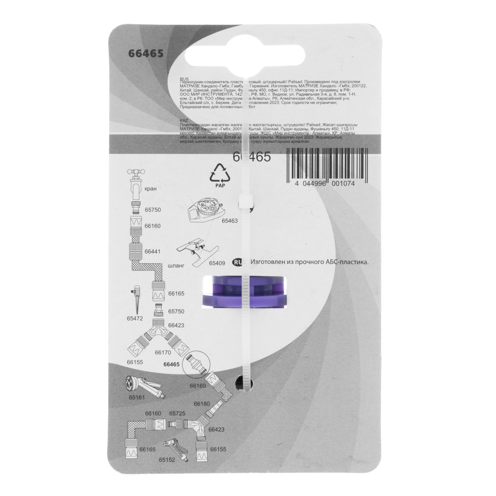 Пластмассовый штуцерный переходник-соединитель Palisad 66465 позволяет удлинить шланг или соединить шланги разных диаметров. Может быть временно установлен в качестве ремонтной муфты. Упрощает монтаж поливочной линии на приусадебном участке.ПреимуществаДолгий срок службы — переходник изготовлен из ударопрочного ABS-пластика, устойчивого к повреждениям.Быстрый монтаж — стандартные штуцерные выходы упрощают подключение быстросъемных коннекторов.Универсальность — изделие совместимо с элементами всех систем полива Palisad.