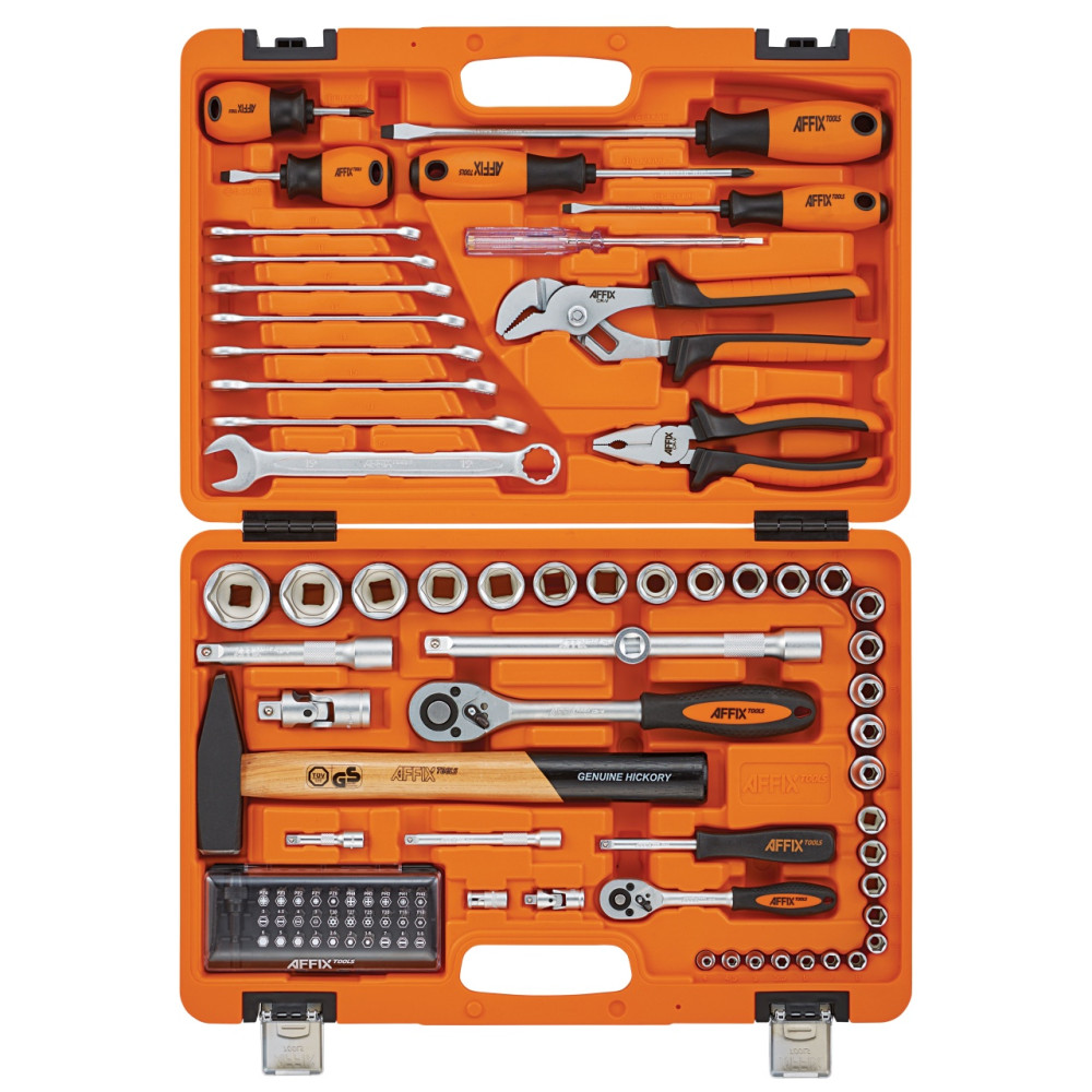 Материалы – сталь Cr-V, сталь SNCM+V (S2), конструкционная сталь, хром, пластик PP, PP+TPR (рукояти), дерево (рукоять молотка)