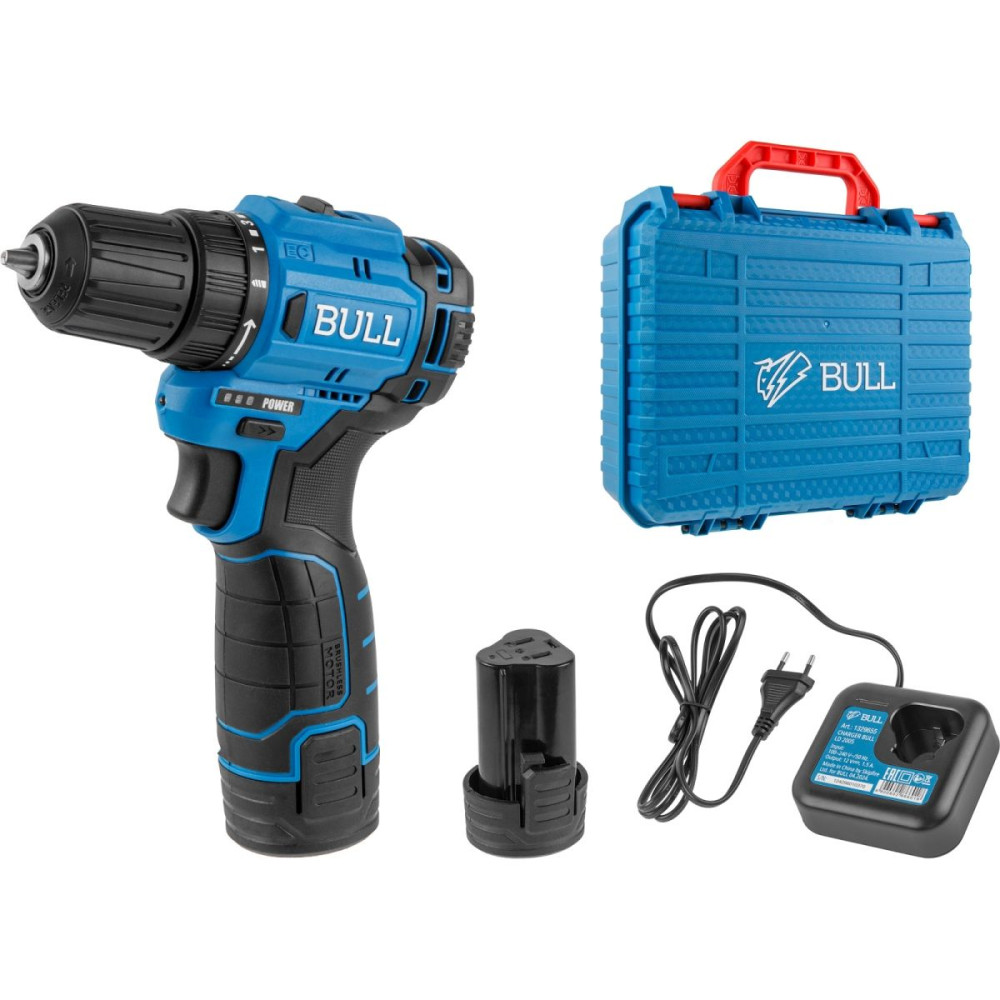 Аккум. дрель-шуруповерт BULL SR 1203 в чем. БЕСЩЕТ., 12 В, 37 Н*м, 2*2 А*ч акб, БЗП 10 мм