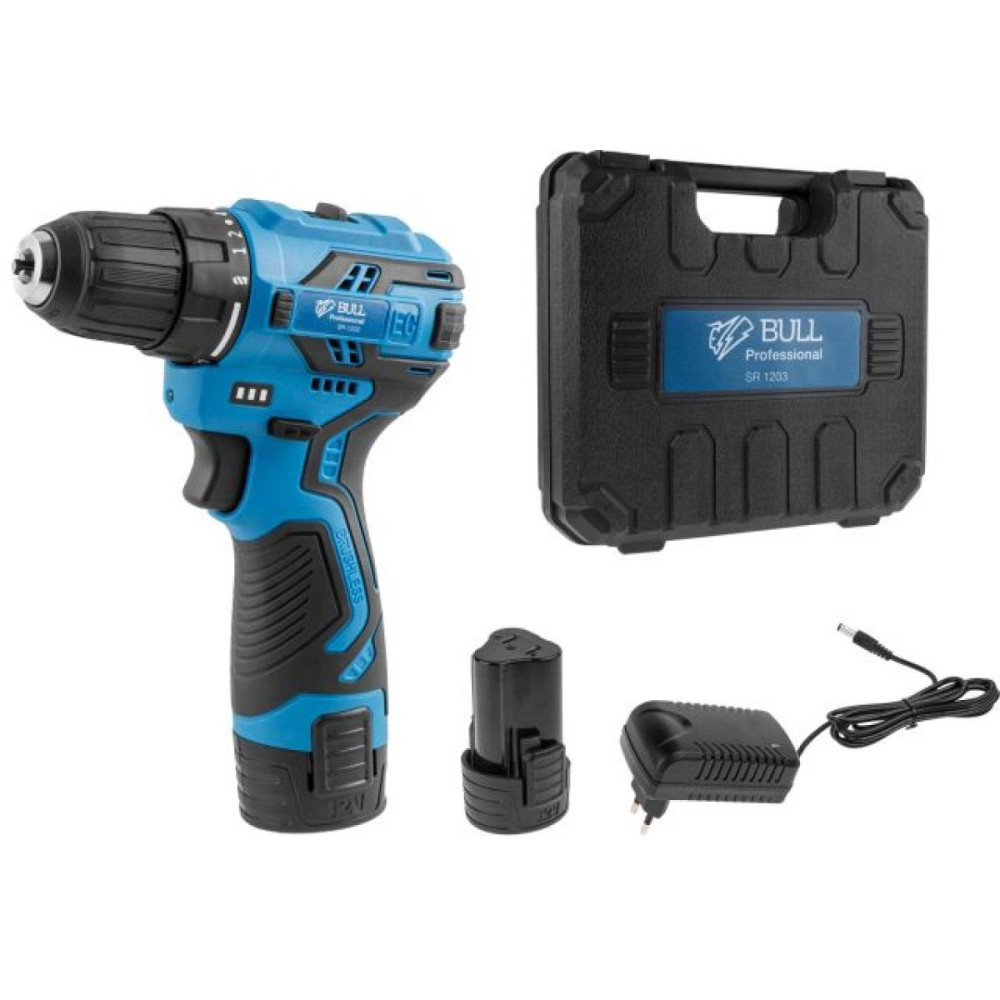 Аккум. дрель-шуруповерт BULL SR 1203 в чем. БЕСЩЕТ., 12 В, 40 Н*м, 2*2 А*ч акб, БЗП 10 мм