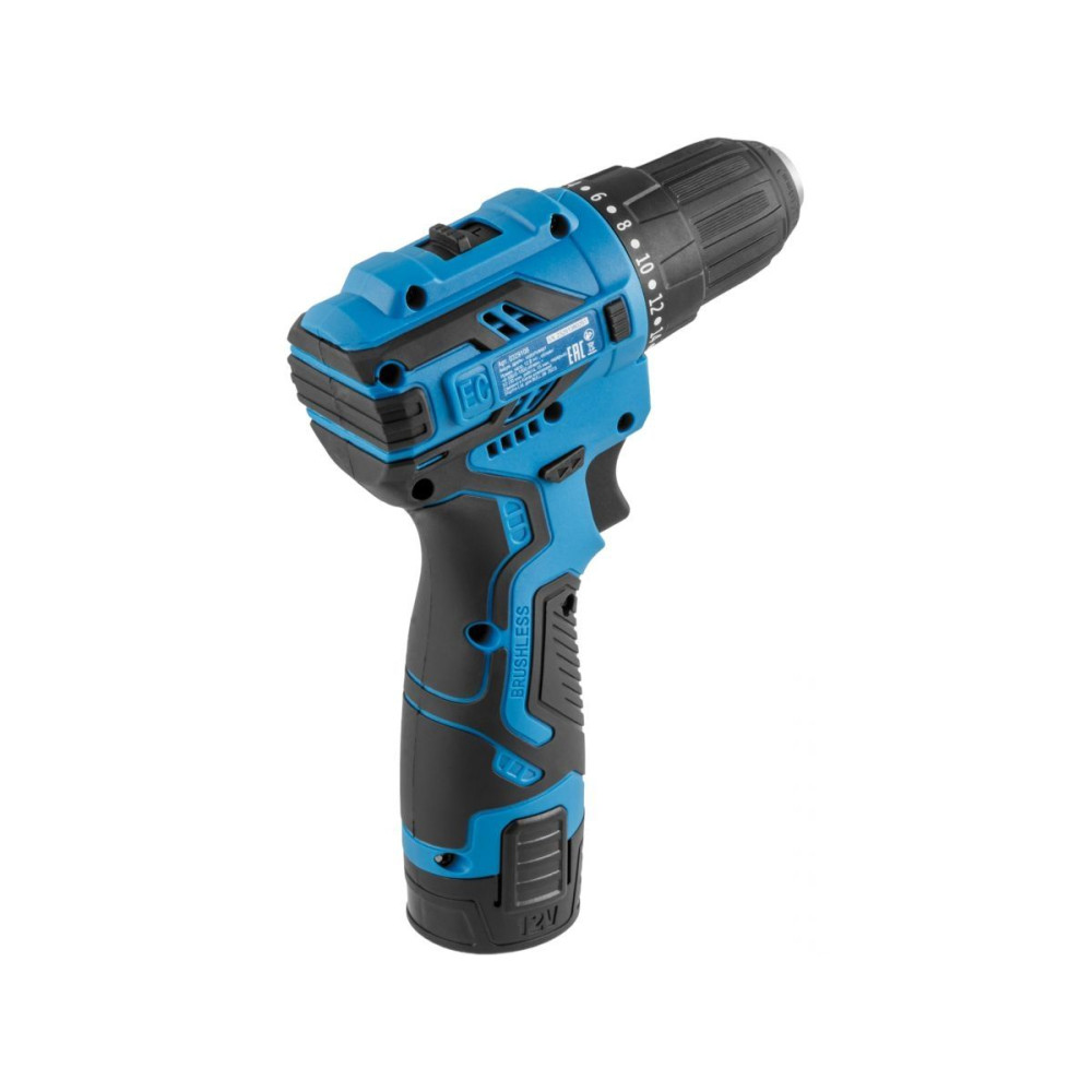 Аккумуляторная дрель-шуруповерт имеет мощный бесщеточный двигатель, что делает его компактным, легким и значительно повышает ресурс работы. Дрель-шуруповерт оснащена надежным двухскоростным редуктором: первая скорость предназначена для закручивая крепежных элементов, вторая - для сверления отверстий. Наличие быстрозажимного патрона обеспечивает быструю и удобную замену оснастки одной рукой. Эргономичная рукоятка имеет мягкую накладку для более комфортной и безопасной работы. Встроенная LED-подсветка помогает оператору при работе в условиях недостаточной освещенности. Два аккумулятора и зарядное устройство, входящие в состав комплекта поставки, обеспечивают непрерывную работу инструмента. Шуруповерт отличается повышенной твердостью шестерен.