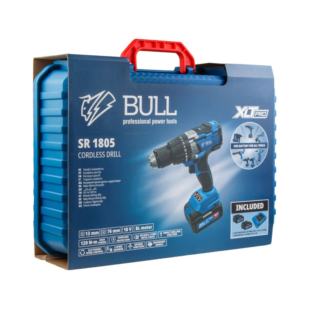 Аккум. дрель-шуруповерт BULL SR 1805 в чем. XLTpro, 2х4 А*ч, БЕСЩЕТ., 18 В, 120 Н*м, БЗП(мет.) 13 мм