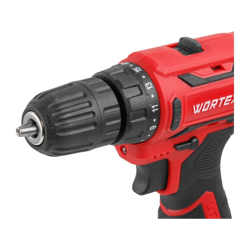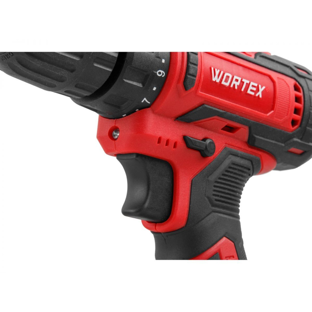 Компактный шуруповерт WORTEX оснащен производительным двигателем и надежным редуктором, что позволяет ему развивать усилие в 30 Н*м.