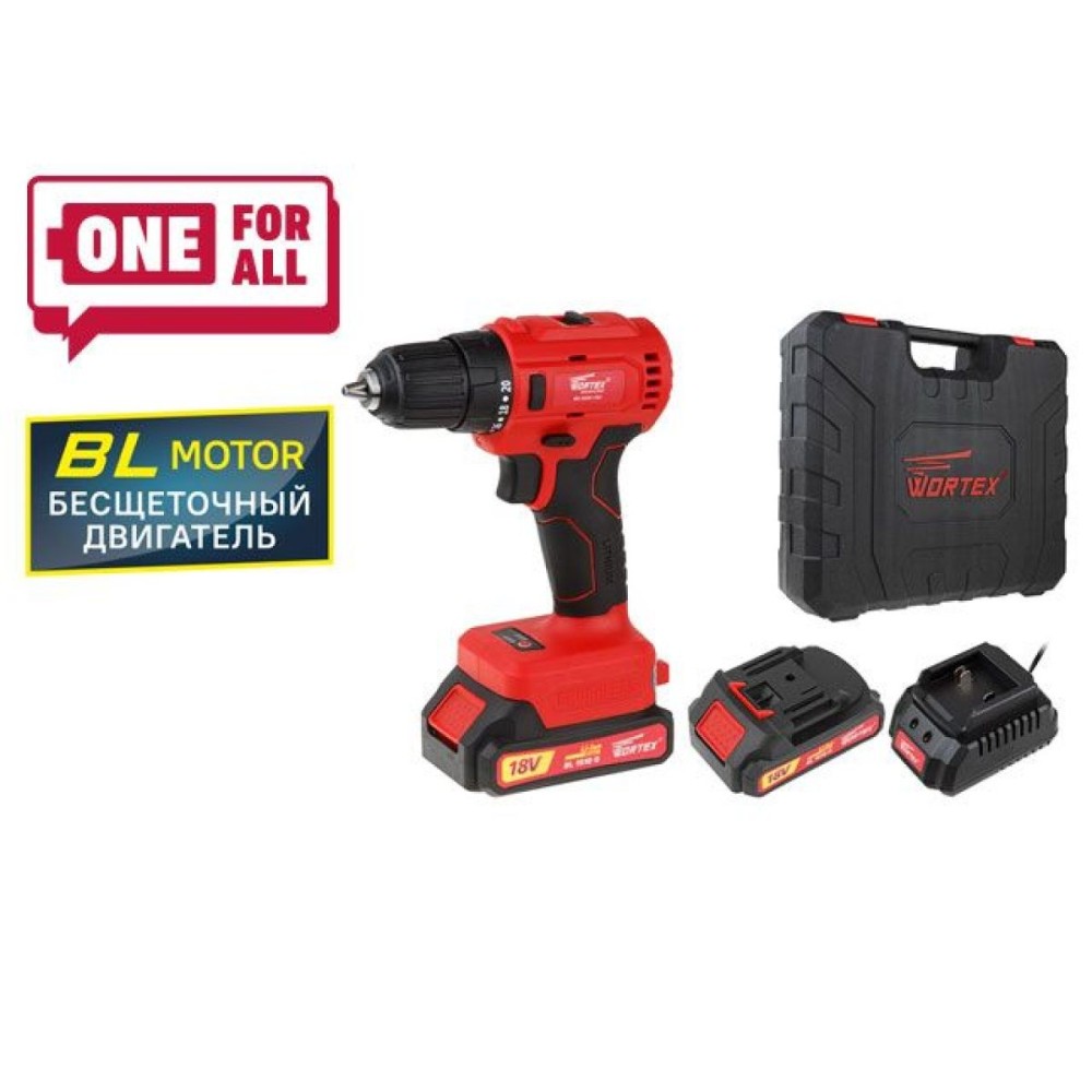 Аккум. дрель-шуруповерт WORTEX BD 2025-1 DLi в чем. ALL1 XLT БЕСЩЕТ, 18 В, 50 Н*м, 2х1,5 А*ч, БЗП 10