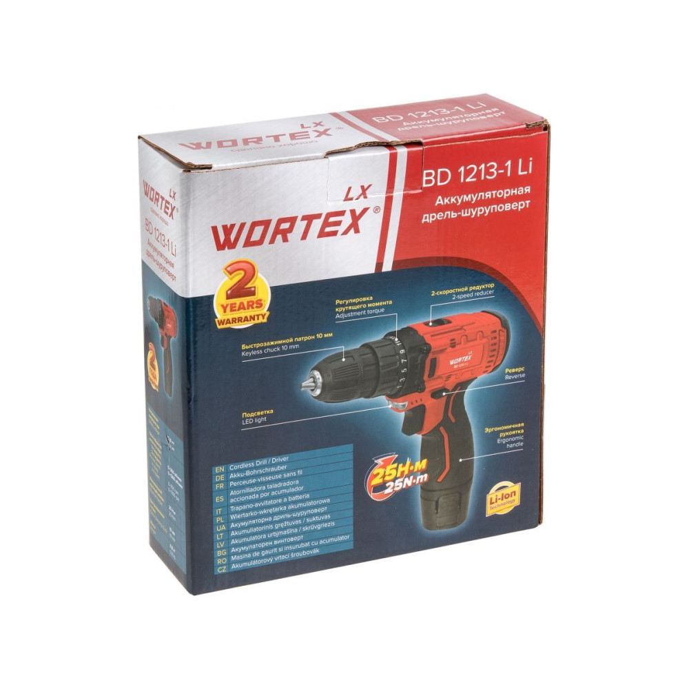Аккум. дрель-шуруповерт WORTEX LX BD 1213-1 Li в кор. 12 В, 25 Н*м, 1х1.5 А*ч, БЗП 10 мм