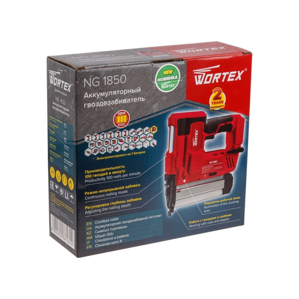 Аккум. гвоздезабиватель WORTEX NG 1850 в кор. ALL1 XLT SOLO, 18 В, 15-50 мм, 100 в мин., 100 шт.