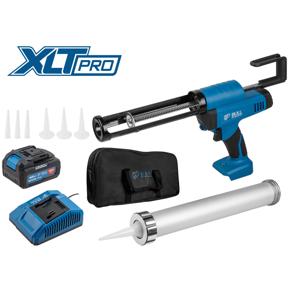 Аккум. пистолет для герметика BULL CG 1860 SET(1х4), сумка, 300/600 мл, 2500 Н, 8,3 мм/с, рег. скор.