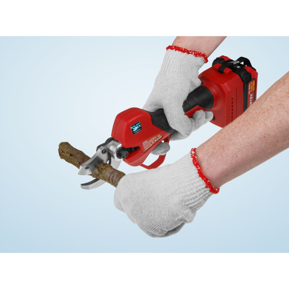 Аккумуляторный секатор идеально подходит для комплексного ухода за садом: обрезки ветвей кустарников и деревьев. Кроме того секатор обладает высокой режущей способностью благодаря острому ножу из твердой стали. Бесщёточный двигатель делает инструмент компкатным и значительно продлевает срок его службы. К тому же для удобства пользователя предусмотрена двухпозиционная электронная регулировка толщины реза (25 мм и 35 мм). Прорезиненная рукоятка добавит дополнительный комфорт при работе. Имеет также встроенный дисплей, отображающий процент заряда батареи, а также кол-во совершенных резов. Поставляется в пластиковом кейсе.