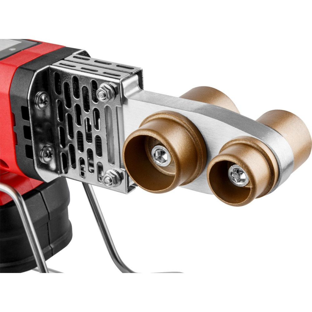 Благодаря электронной регулировке температуры, аккумуляторный сварочный аппарат подойдёт для сварки полимерных труб, изготовленных из любых термопластических материалов. Качество работы обеспечивается низким колебанием температур. В комплекте, помимо лёгкой и устойчивой подставки, присутствуют тефлоновые насадки трёх разных диаметров.Текущая и заданная температуры отображаются на LED дисплее устройства.Для безопасности устройство не начинает нагрев, если не установлена насадка.
