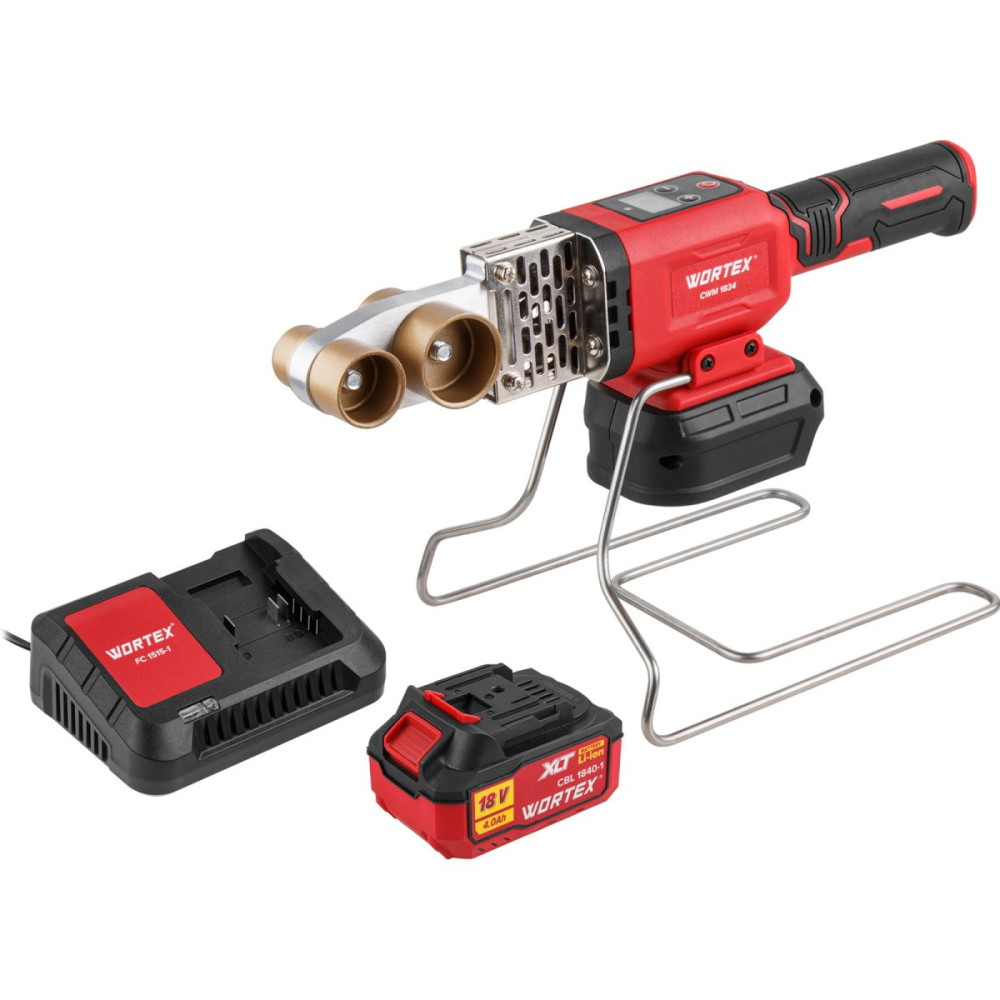 Аккум. сварочный аппарат для полимерных труб WORTEX CWM 1834 ALL1 XLT SET с акб и зу+3 насадки