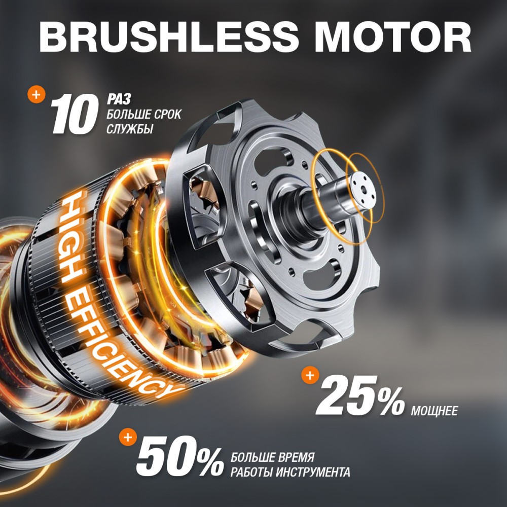 - Бесщеточный электродвигатель. За счет отсутствия коллекторно-щеточного узла он обеспечивает плавную и тихую работу, не требует сервисного обслуживания и отличается высокой производительностью и низким уровнем шума.