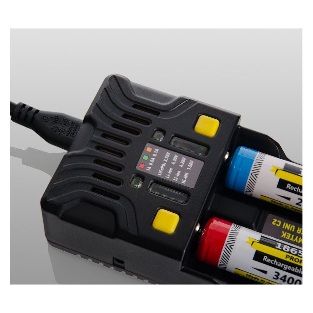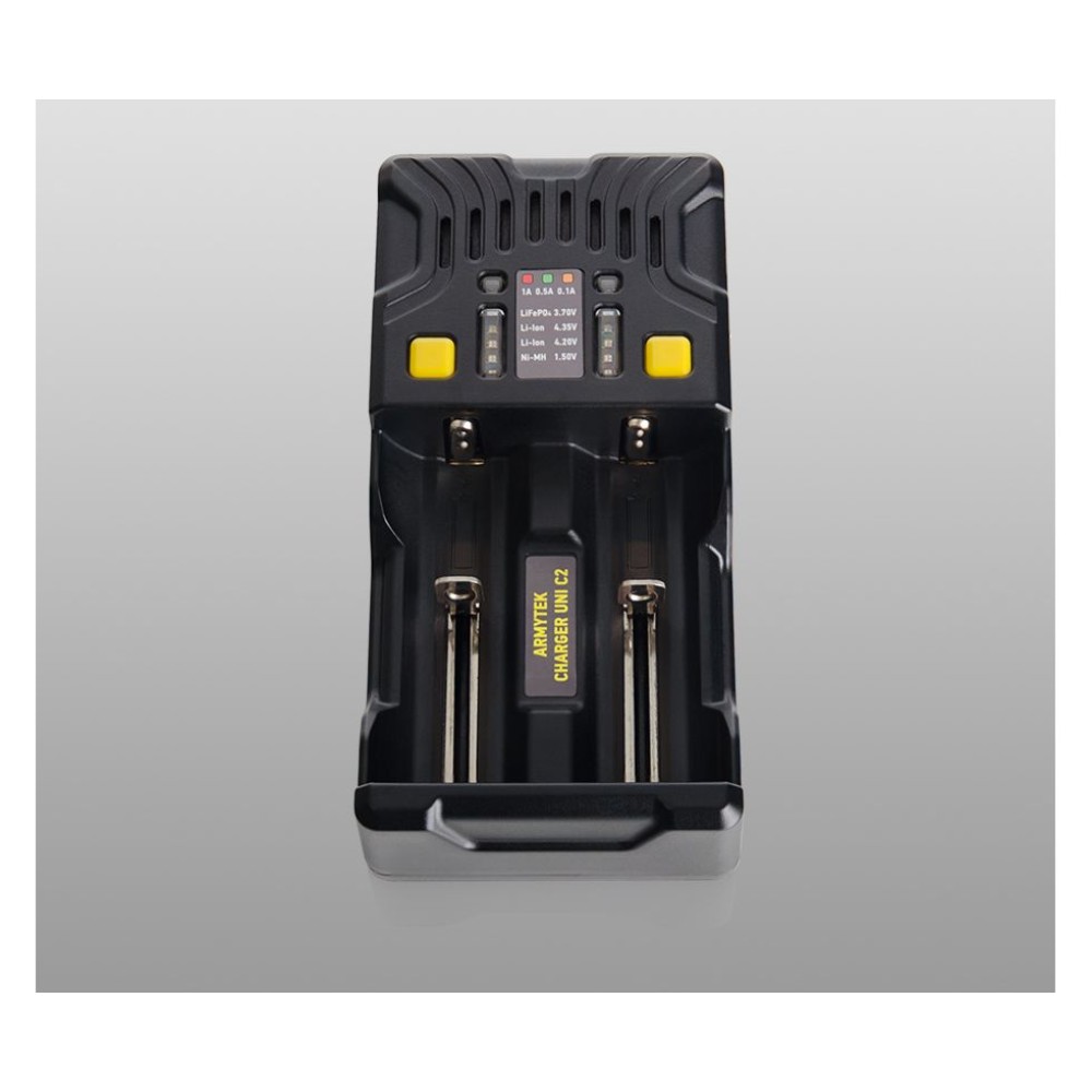 Armytek Uni C2 универсальное зарядное устройство. С помощью него Вы можете заряжать одновременно аккумуляторы разных типов, благодаря тому, что напряжение подается отдельно на каждый канал. Одной кнопкой Вы легко сможете выбрать тип батареи и ток заряда. Зарядное устройство изготовлено из огнестойких материалов для хорошего теплоотвода.