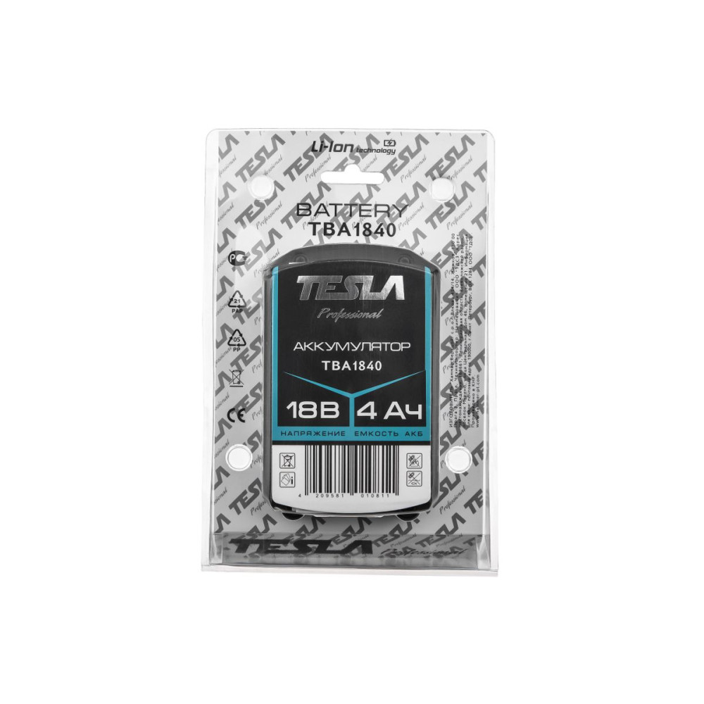 - Аккумулятор TESLA TBA1840 18.0В 4.0Ач