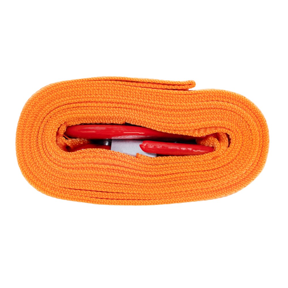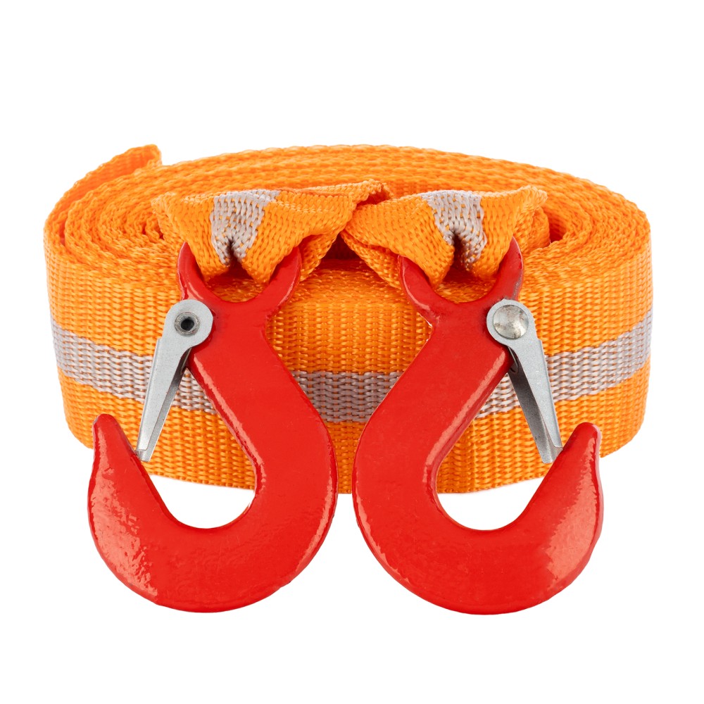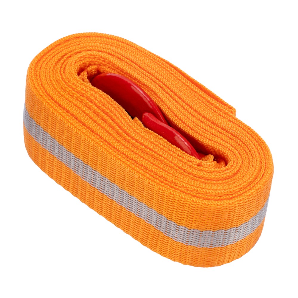 Трос буксировочный Stels 54373 с 2 крюками, в пакете, выдерживает нагрузки до 3,5 тонн. Будет полезен водителям при поломке легковых автомобилей, проблемах с двигателем, вытягивании транспортного средства из кювета, грязи и т.д.ПреимуществаНадежность — морозоустойчивый авиационный капрон не разрушается от резких перепадах температур и влажности, обладает высокой стойкостью к износу и не растягивается в процессе эксплуатации.Удобная эксплуатация — два крюка позволяют легко зацепить трос, а также сделать дополнительную петлю.Безопасная буксировка — 5-метровый трос удерживает авто на оптимальном расстоянии, а благодаря оранжевому цвету он хорошо заметен на дороге.Компактность — ленточный плоский трос весом 398 г легко скручивается в рулон и помещается в багажнике.Гарантированное качество — изделие соответствует требованиям ПДД и основным положениям допуска ТС к эксплуатации.Удобная транспортировка и хранение — трос поставляется в индивидуальной упаковке.