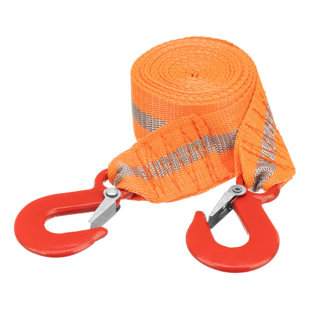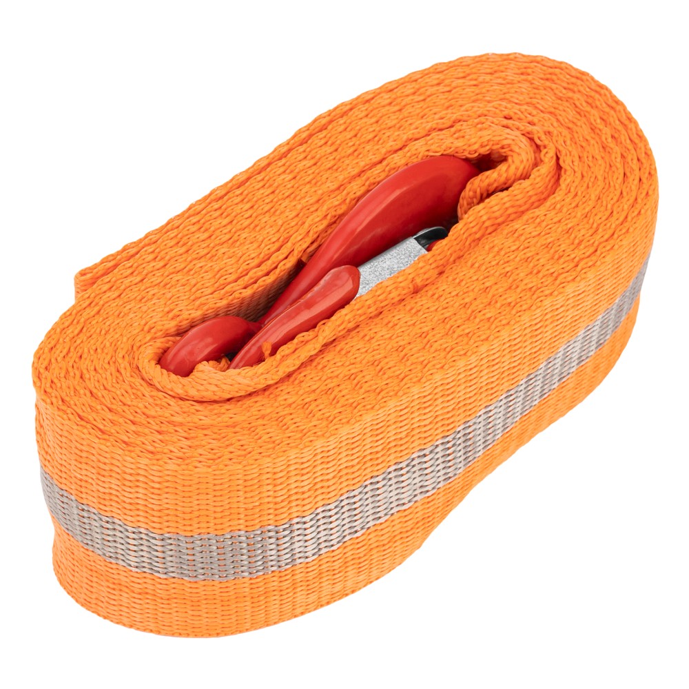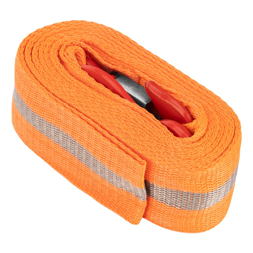 Трос буксировочный Stels 54379 с 2 крюками, поставляющийся в сумке на молнии, используется для буксировки на гибкой сцепке легковых автомобилей массой до 3,5 тонн. Выручит автолюбителя в сложной ситуации на дороге: если закончилось топливо, сломался двигатель, застряли колеса и т. д.ПреимуществаВысокий ресурс — трос из морозостойкого авиационного капрона не разрушается от резких перепадов температур, влажности и не растягивается в процессе эксплуатации.Длина 5 м — автомобиль находится на оптимальном расстоянии от буксировочной машины.Удобный зацеп — трос оснащен двумя крюками, а его длина позволяет сделать дополнительную петлю.Ярко-оранжевый цвет — изделие хорошо видно на дороге, что обеспечивает дополнительную безопасность буксировки.Качественное исполнение — приспособление изготовлено согласно требованиям ПДД и основным положениям допуска ТС к эксплуатации.Удобная транспортировка и хранение — трос ленточного типа легко сматывается в рулон и убирается в сумку на молнии.
