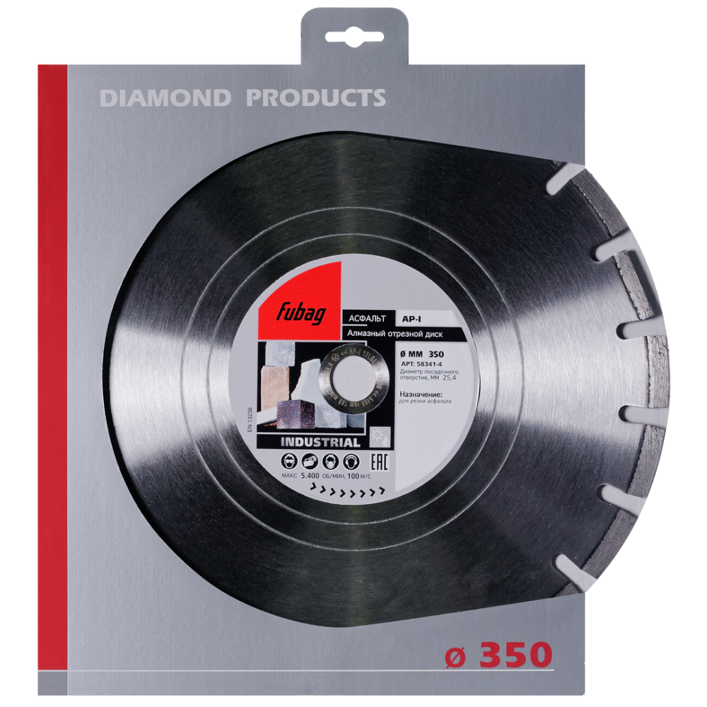 Алмазный отрезной диск для асфальта с сегментной режущей кромкой диаметром 350 мм и посадочным отверстием 25.4 мм