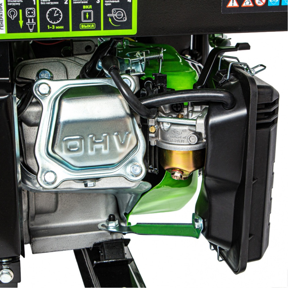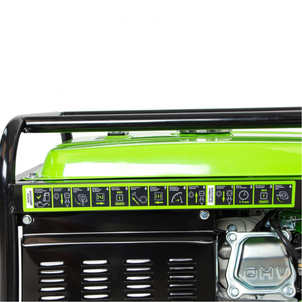 - Прочная конструкция — стальная рама надежно защищает генератор от повреждений.