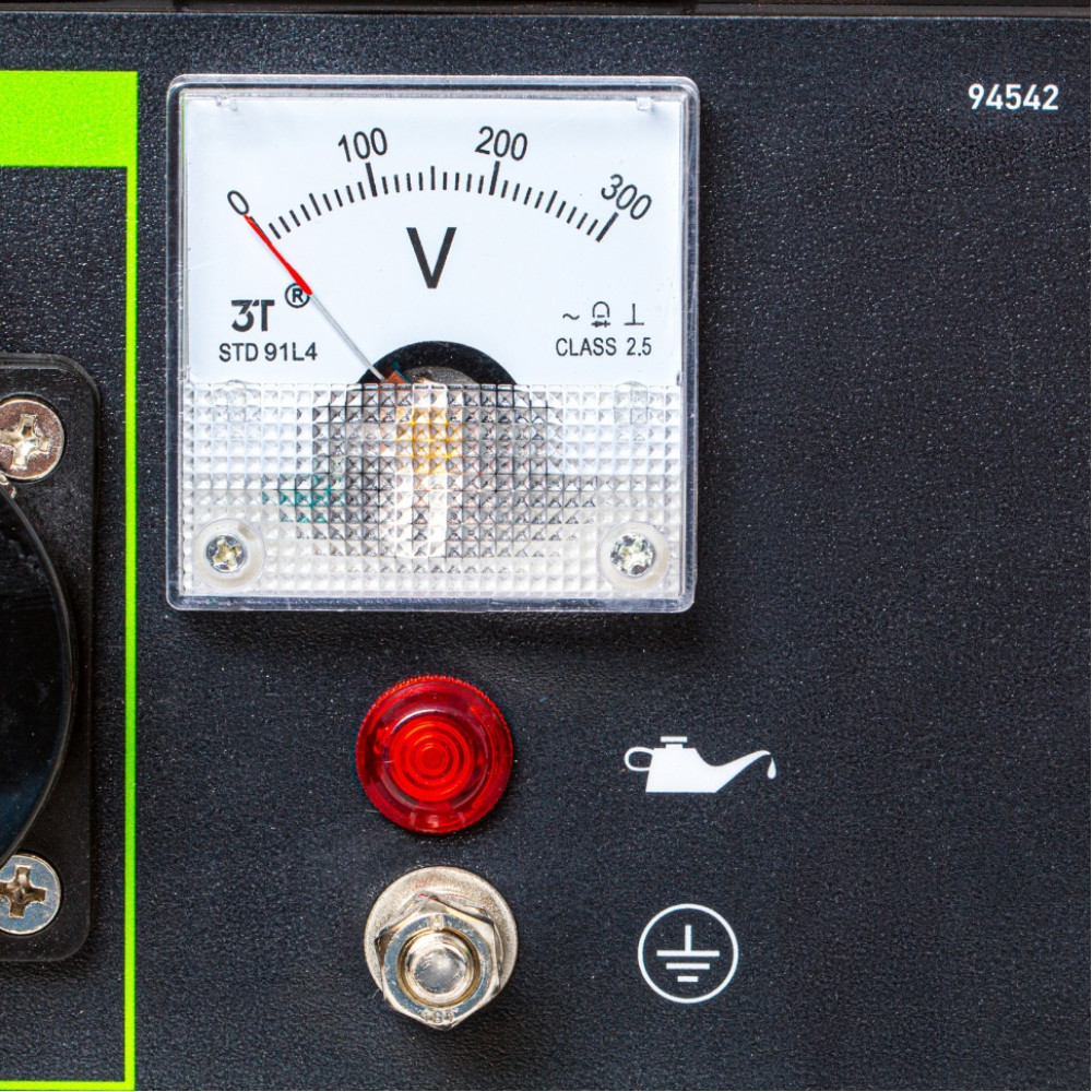 - Контроль рабочих параметров — встроенный вольтметр позволяет отслеживать напряжение в сети, а топливный индикатор — уровень бензина в баке.