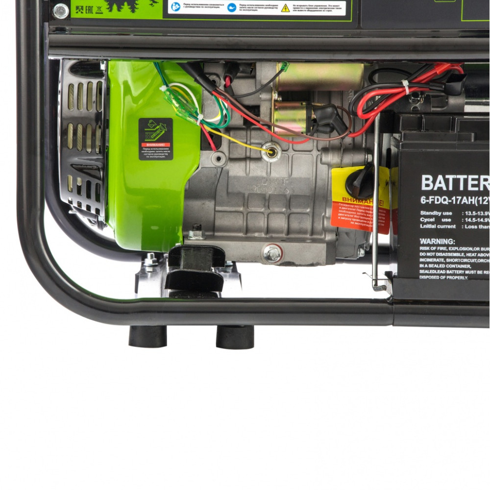 - Защита двигателя — специальный датчик не позволяет запустить генератор при низком уровне масла в картере.
