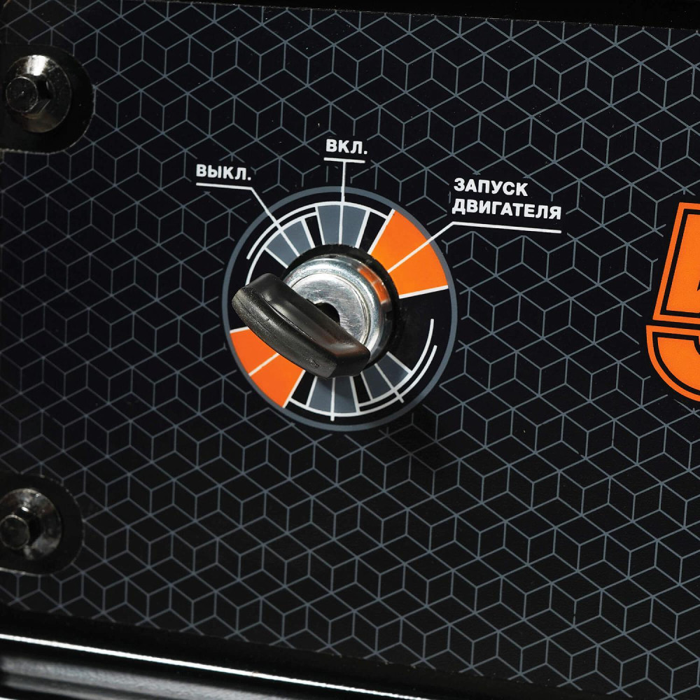 ✔ Запуск от ключа. Встроенный электрический стартер и бортовой аккумулятор облегчают работу с генератором, особенно для неопытных пользователей