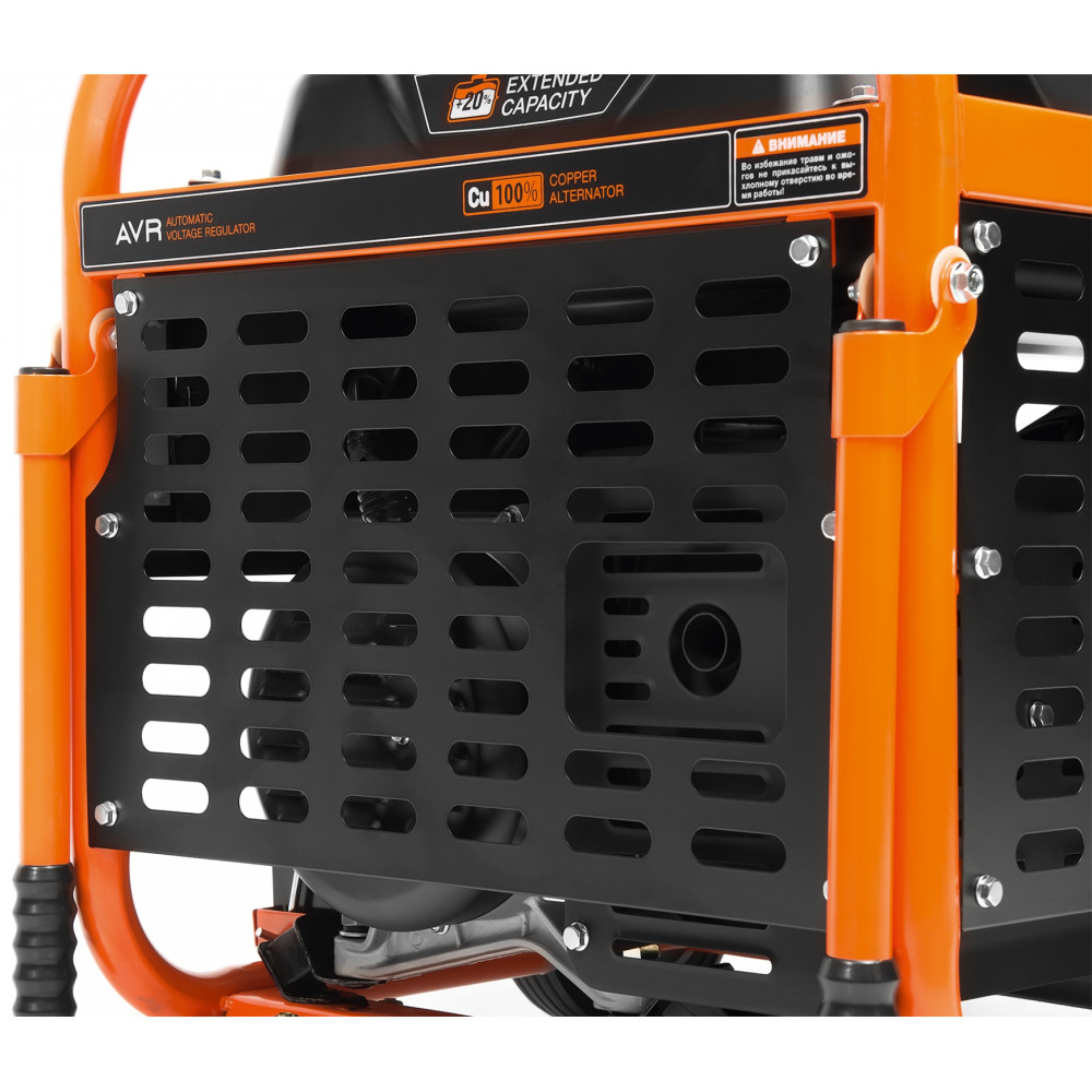 ✔ Защита двигателя и альтернатора. Дополнительные металлические экраны установлены для защиты важных агрегатов генератора от механических повреждений. Рекомендуется для использования на строительных объектах.