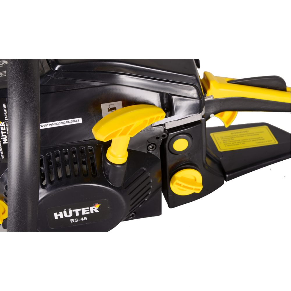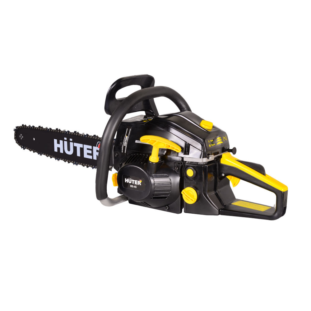 Бензопила HUTER BS-45 - легкий и надежный инструмент для дачи и небольшого загородного строительства. Пила укомплектована двигателем на 2,3 л.с.и 45 сантиметровой шиной для заготовки дров и подрезки небольших деревьев. Автоматический тормоз цепи и щиток для рук обеспечивают безопасность. Воздушный фильтр защищен специальным кожухом, который легко открывается с помощью специального поворотного колесика. Рукоятка бензопилы Huter BS-45 имеет удобную для захвата форму. Расширенная нижняя часть рукоятки - для защиты руки при разрыве цепи. Объем бака в 0,55 литра хватает на долгую работу без дозаправки. В полной комплектации пила весит 7 кг.