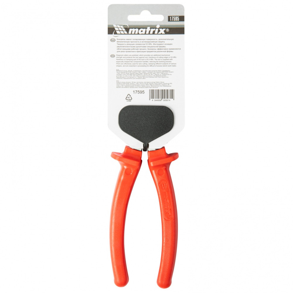 Шлифованные бокорезы Matrix Econom 17595, 180 мм, с пластмассовыми рукоятками, предназначены для разрезания проводов, кабелей и проволоки диаметром до 2,5 мм. Инструмент пригодится при проведении монтажных, строительных и слесарных работ. Бокорезы используются как начинающими мастерами, так и профессионалами на строительных площадках и в домашних мастерских.