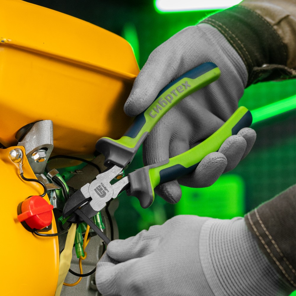 Фосфатированные бокорезы Сибртех 17531 длиной 200 мм, с трехкомпонентными рукоятками, применяются для перекусывания проводов, проволоки и стержней, резки металлических и пластмассовых деталей. Будут полезны при проведении монтажных и слесарных работ дома, в гараже, а также в мастерской и на строительной площадке.ПреимуществаПрочность и высокий ресурс — бокорезы выполнены из кованой и закаленной в масле стали 45, губки частично отшлифованы.Защита от коррозии — фосфатированные рабочие части устойчивы к воздействию влаги.Безопасная работа — широкие упоры препятствуют соскальзыванию руки к рабочим частям.Эргономичность — трехкомпонентные рукоятки с антискользящим покрытием обеспечивают надежный хват.