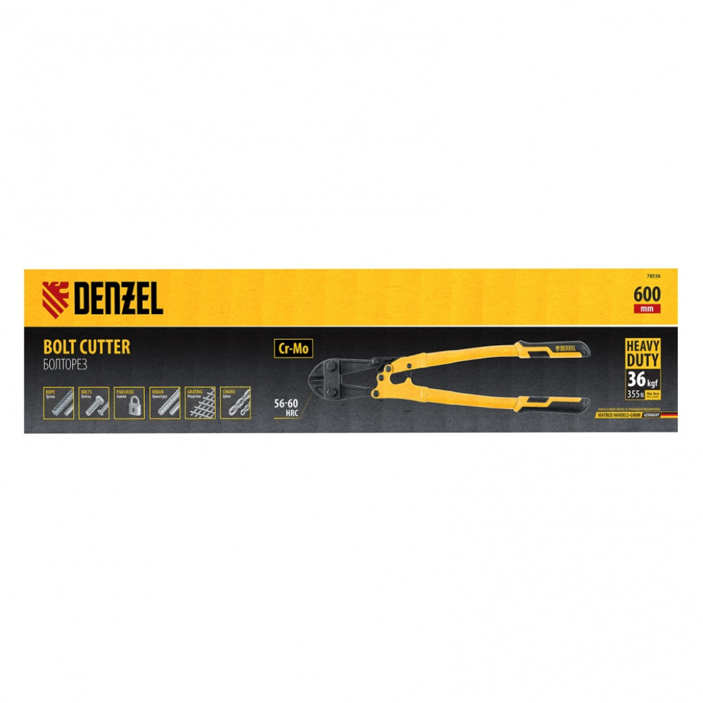 Болторез Denzel 78536 длиной 600 мм (24 дюймов), из стали Cr-Mo, предназначен для перекусывания стальных прутков диаметром 9,5 мм, болтов и шурупов, тросов, разнородной проволоки.
