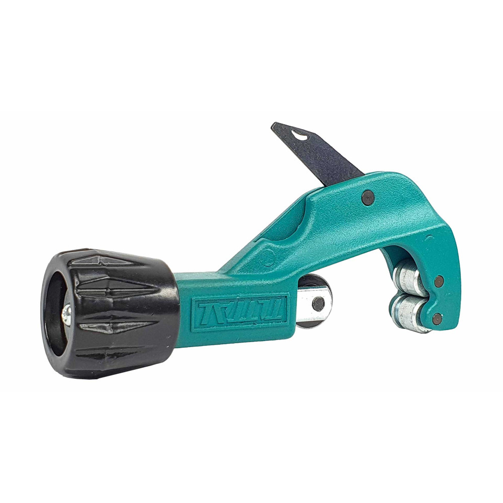 - Профессиональный труборез TOTAL THT53321 предназначен для резки медной, алюминиевой, из нержавеющей стали трубы диаметром 3-32 мм.