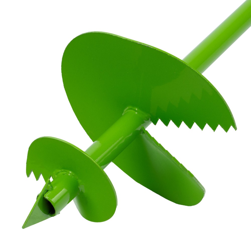Садовый шнековый бур Сибртех 64503 длиной 1085 мм и диаметром 200 мм предназначен для работ с грунтом — подготовки ям под столбчатые опоры и дренажные скважины, а также создания лунок для посадки растений и внесения удобрений. Инструмент успешно справляется с этими задачами благодаря шнековой конструкции, облегчающей процесс бурения, — нет необходимости вынимать бур из ямки для отбрасывания грунта.ПреимуществаПрочность и долговечность — бур выполнен из среднеуглеродистой стали.Коррозионная стойкость — инструмент покрыт порошковой эмалью.Дополнительные возможности — резьбовое соединение позволяет установить удлинитель Сибртех 64508, увеличив глубину бурения на 104 см.Комфортная работа — полипропиленовые накладки на рукоятке обеспечивают удобный захват.