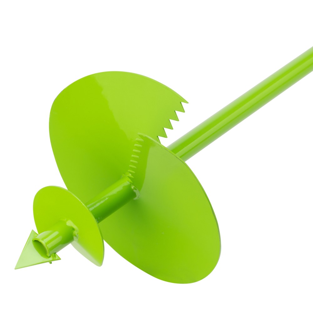 Садовый шнековый бур Сибртех 64504 длиной 1085 мм и диаметром 250 мм предназначен для работ с грунтом — подготовки ям под столбчатые опоры и дренажные скважины, а также создания лунок для посадки растений и внесения удобрений. Инструмент успешно справляется с этими задачами благодаря шнековой конструкции, облегчающей процесс бурения, — нет необходимости вынимать бур из ямки для отбрасывания грунта.ПреимуществаПрочность и долговечность — бур выполнен из среднеуглеродистой стали.Коррозионная стойкость — инструмент покрыт порошковой эмалью.Дополнительные возможности — резьбовое соединение позволяет установить удлинитель Сибртех 64508, увеличив глубину бурения на 104 см.Комфортная работа — полипропиленовые накладки на рукоятке обеспечивают удобный захват.