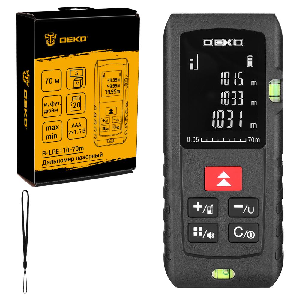 - Дальномер лазерный DEKO R-LRE110-70m предназначен для проведения точных измерительных работ (измерению расстояния, площади и объема).