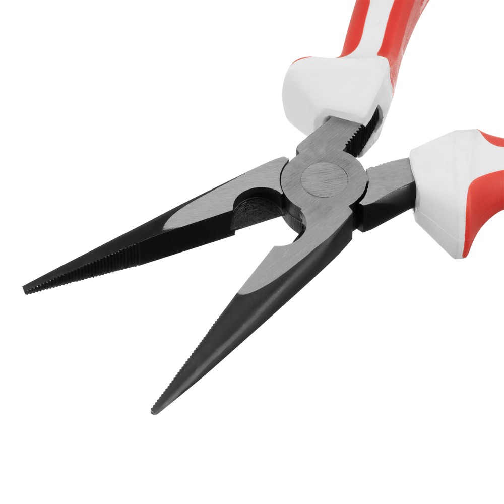 Прямые длинногубцы Matrix Premium 17187 длиной 200 мм, с трехкомпонентными рукоятками, позволяют захватывать и удерживать мелкие детали разной формы, загибать и перекусывать проволоку, прутки, провода. Облегчают работу в труднодоступных местах. Длинногубцы пригодятся слесарям, монтажникам и строителям.ПреимуществаВысокий ресурс — рабочие части прошли индукционную закалку до твердости 49-52 HRC.Долговечность — металлическая фосфатированная поверхность частично отшлифована, поэтому инструмент устойчив к коррозии и износу.Безопасность — широкие упоры на рукоятках предотвращают соскальзывание пальцев к рабочим частям и снижают риск травмирования.Комфортная работа — эргономичные трехкомпонентные рукоятки обеспечивают надежный хват и снижают нагрузку на руку мастера.