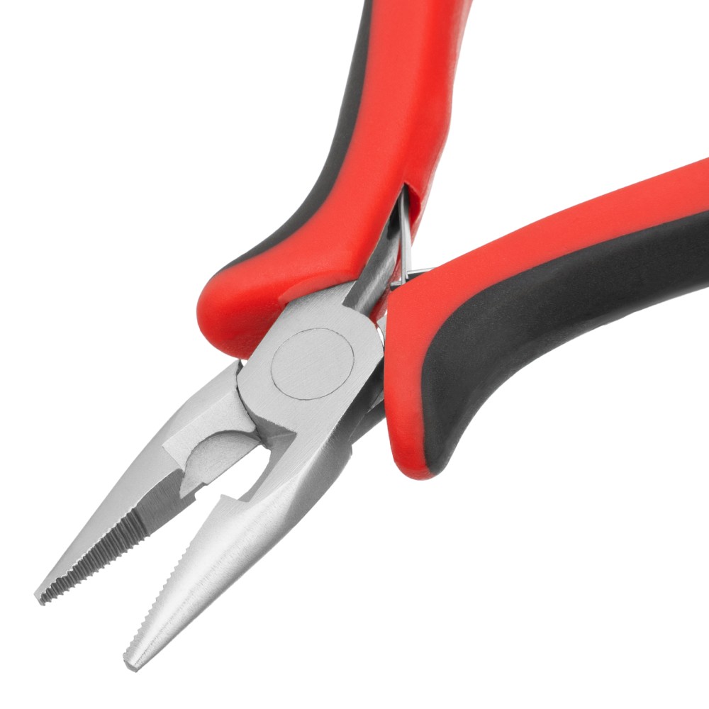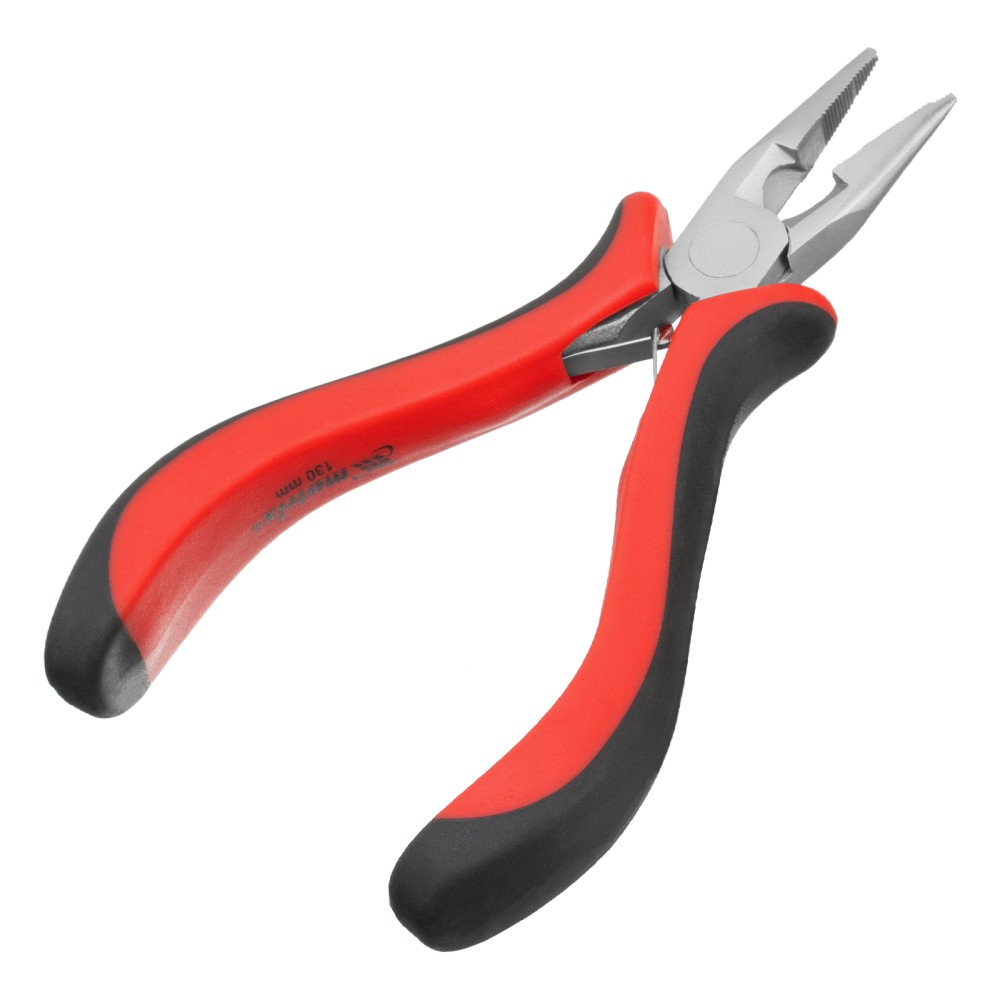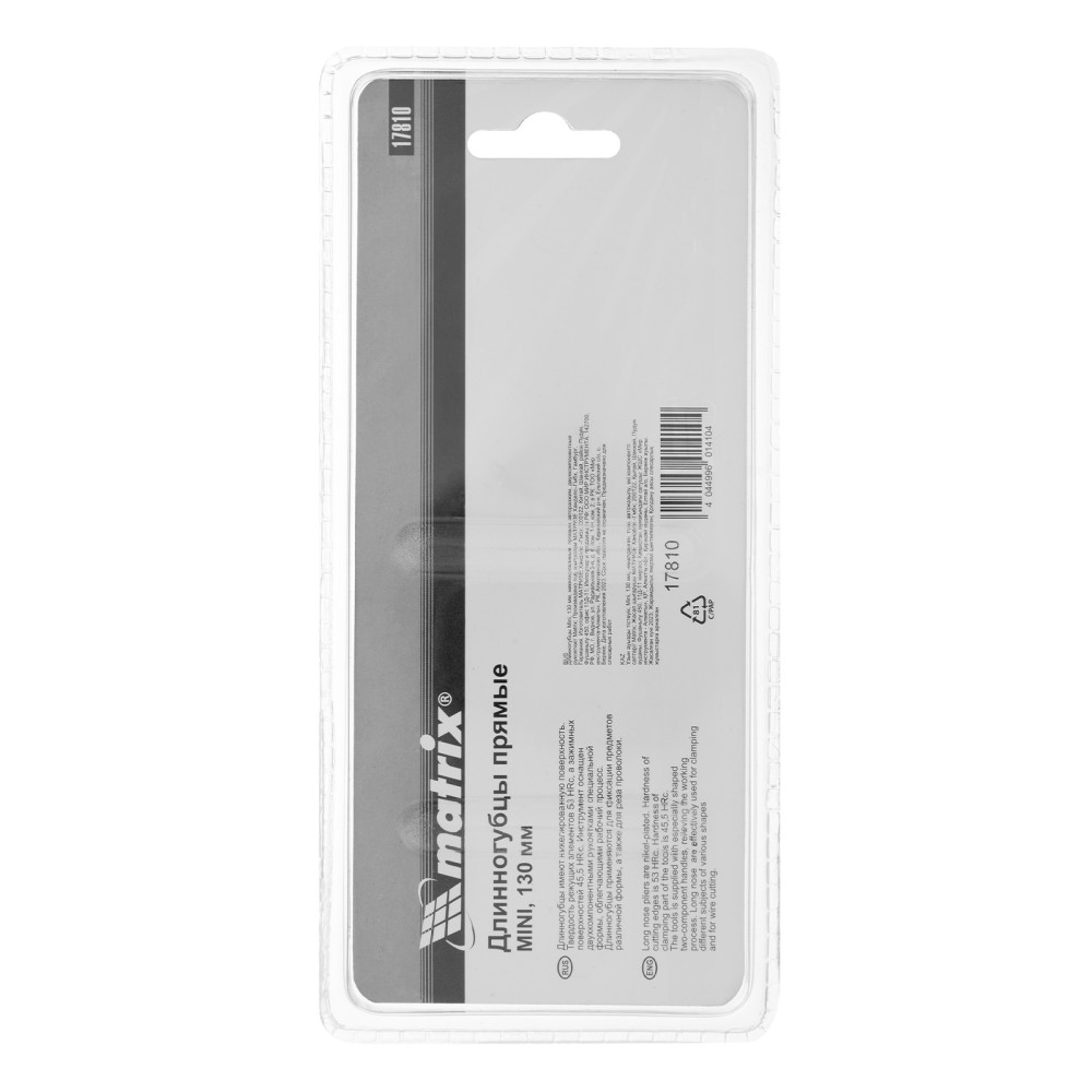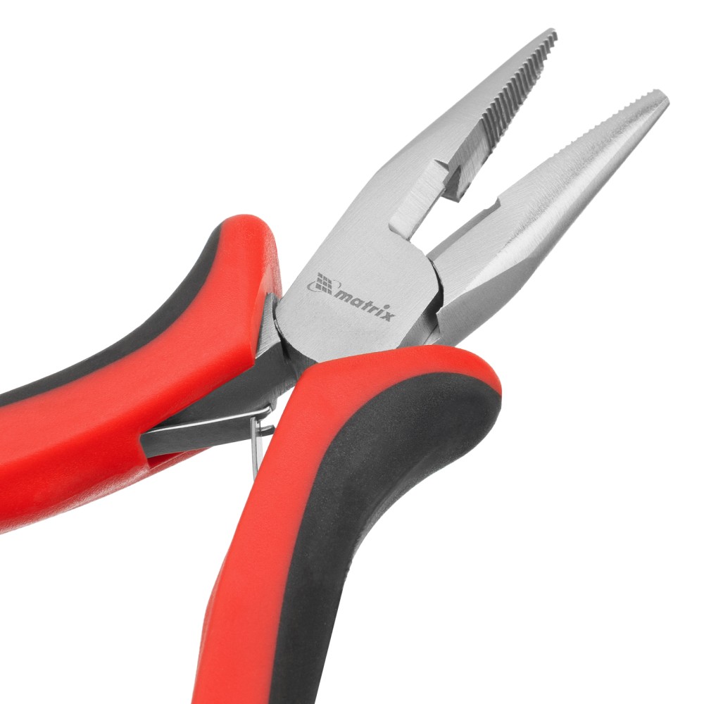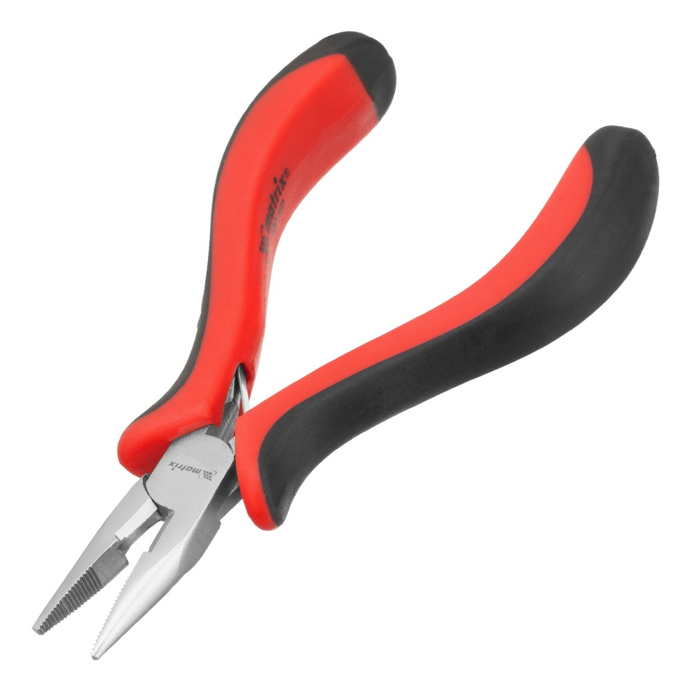 Длинногубцы прямые Mini, 130 мм, никелированные, авторазжим, двухкомпонентные рукоятки Matrix
