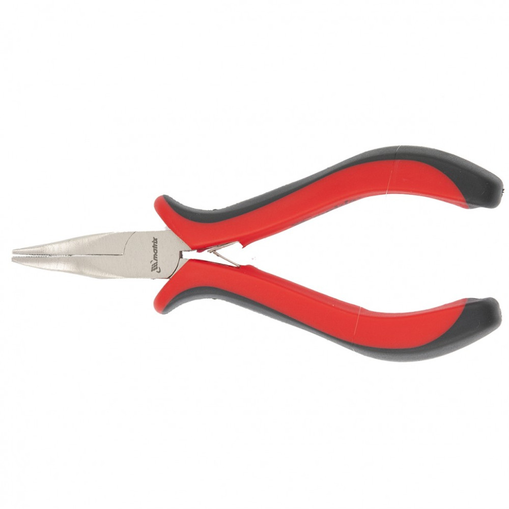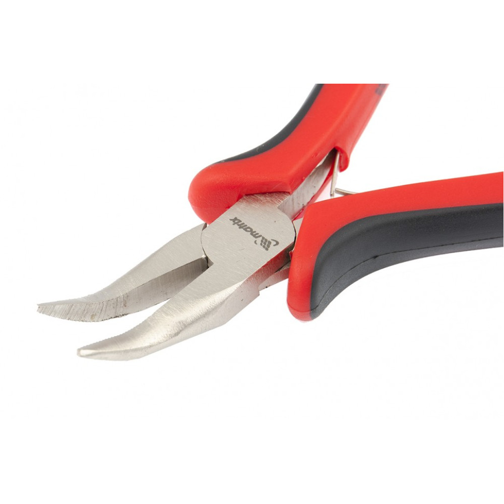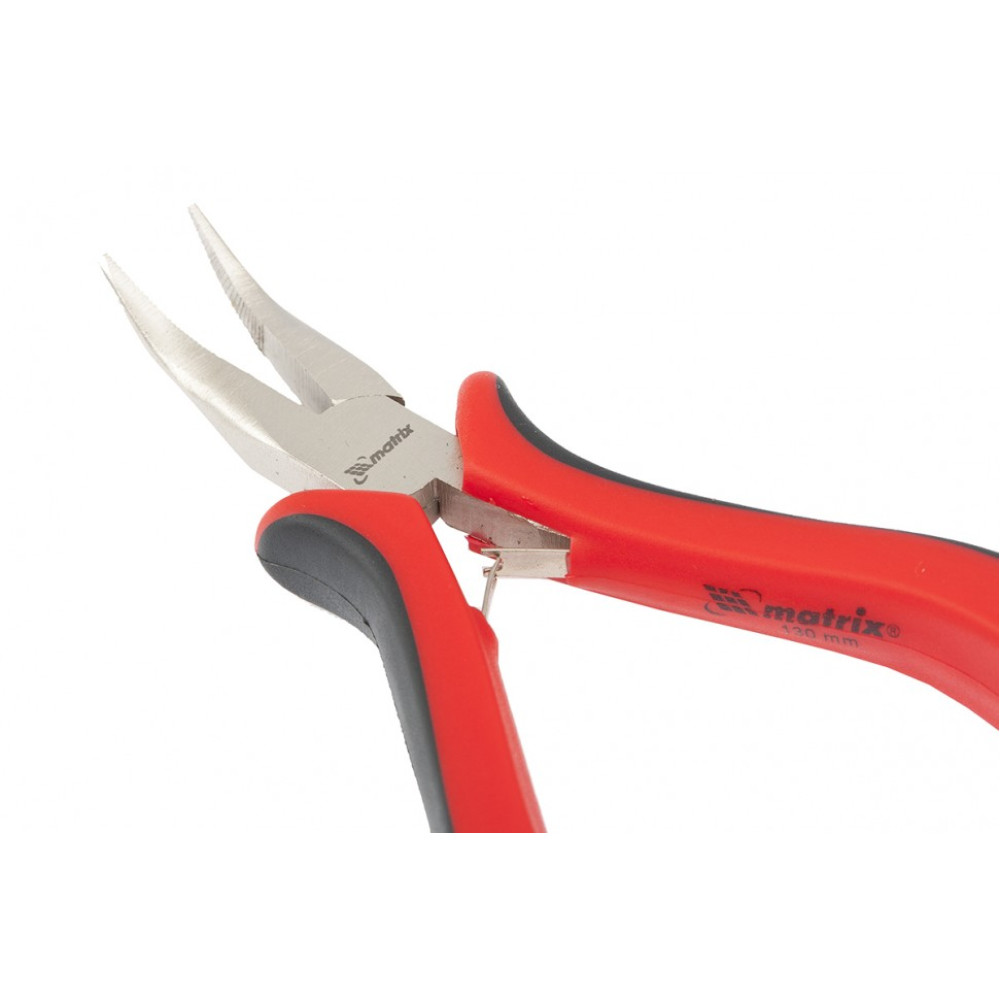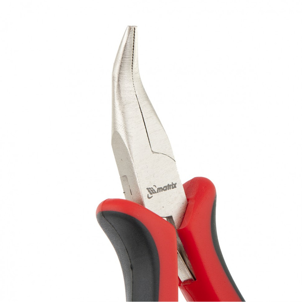 Длинногубцы изогнутые Mini, 130 мм, никелированные, авторазжим, двухкомпонентные рукоятки Matrix
