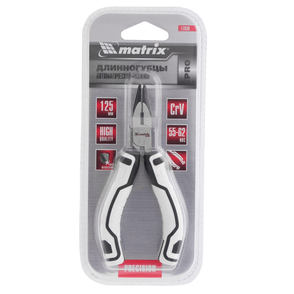 Прямые длинногубцы Matrix PRO Mini 17830 длиной 125 мм, с авторазжимом, пригодятся во время монтажных/демонтажных и ремонтных работ, например, починки бытовой техники. С их помощью удобно захватывать и удерживать мелкие детали, проволоку и провода. Мини-длинногубцы позволяют выполнять операции, требующие высокой точности и аккуратности.ПреимуществаПрочность и износостойкость — зажимные губки и режущие кромки обладают необходимой твердостью.Защита от разрушения — никелированные рабочие части устойчивы к образованию коррозии.Авторазжим — длинногубцы можно удерживать одной рукой, что экономит силы и время мастера.Комфортная работа — двухкомпонентные рукоятки с антискользящими вставками обеспечивают надежный хват.