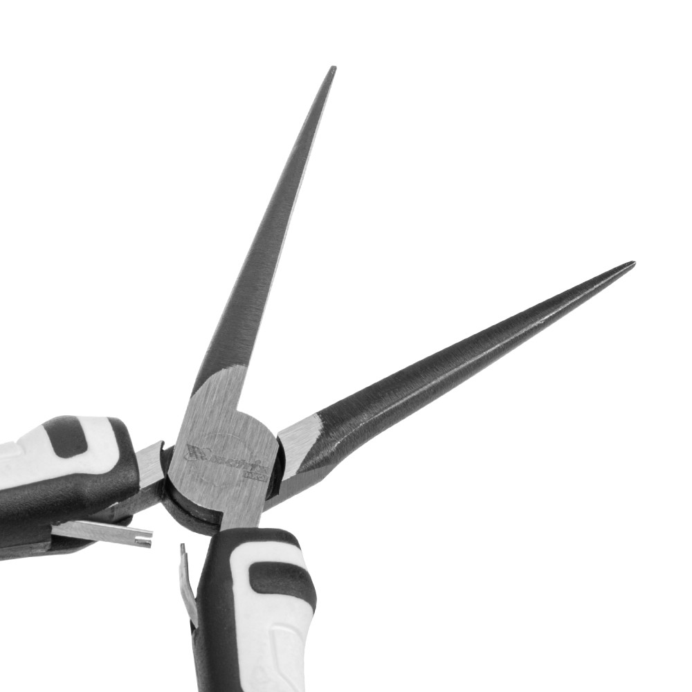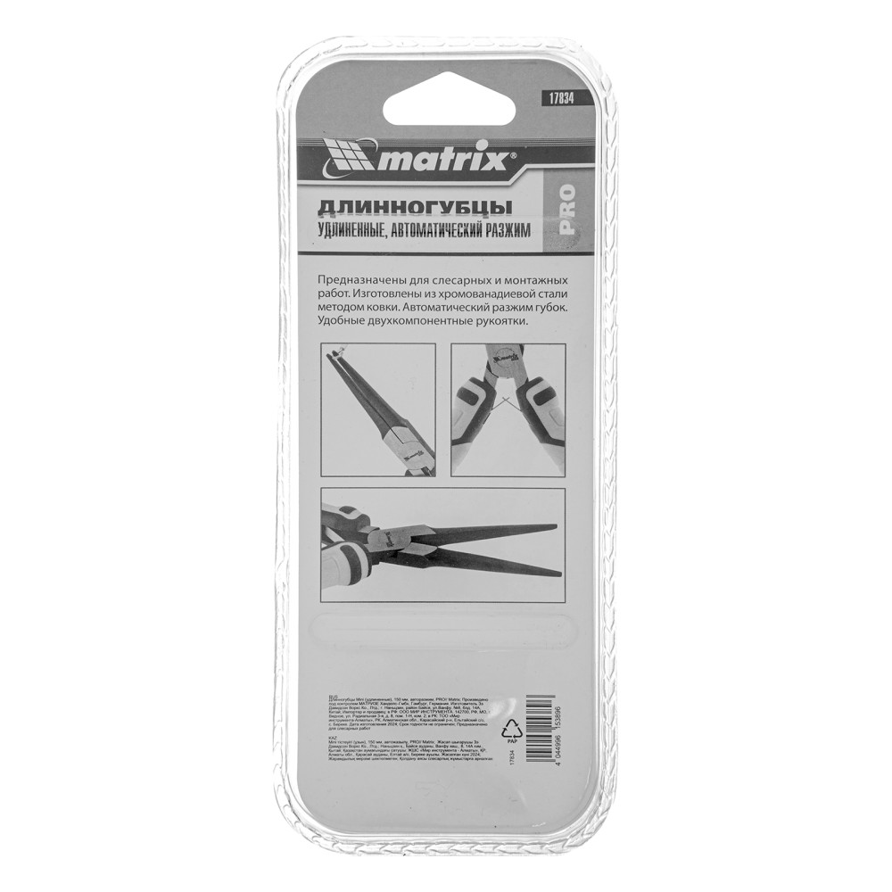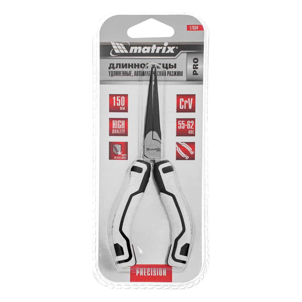 Удлиненные (150 мм) длинногубцы Matrix PRO Mini 17834 с авторазжимом пригодятся во время монтажных/демонтажных и ремонтных работ, например, починки бытовой техники. С их помощью удобно захватывать и удерживать мелкие детали, проволоку и провода. Мини-длинногубцы позволяют выполнять операции, требующие высокой точности и аккуратности.ПреимуществаПрочность и износостойкость — рабочие части выполнены из хромованадиевой стали.Авторазжим — длинногубцы можно удерживать одной рукой, что экономит силы и время мастера.Комфортная работа — двухкомпонентные рукоятки с антискользящими вставками обеспечивают надежный хват.Длина 150 мм — инструмент удобен для работы в труднодоступных местах.