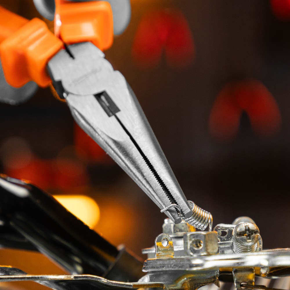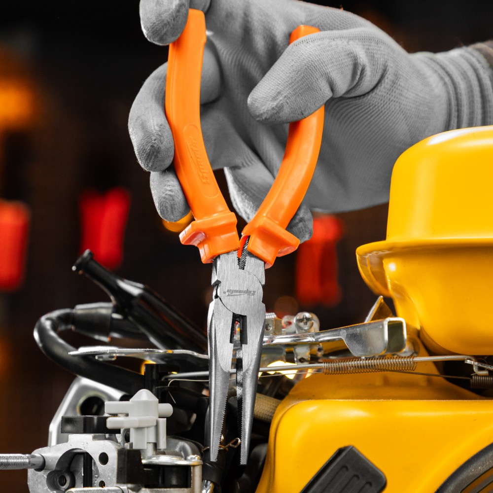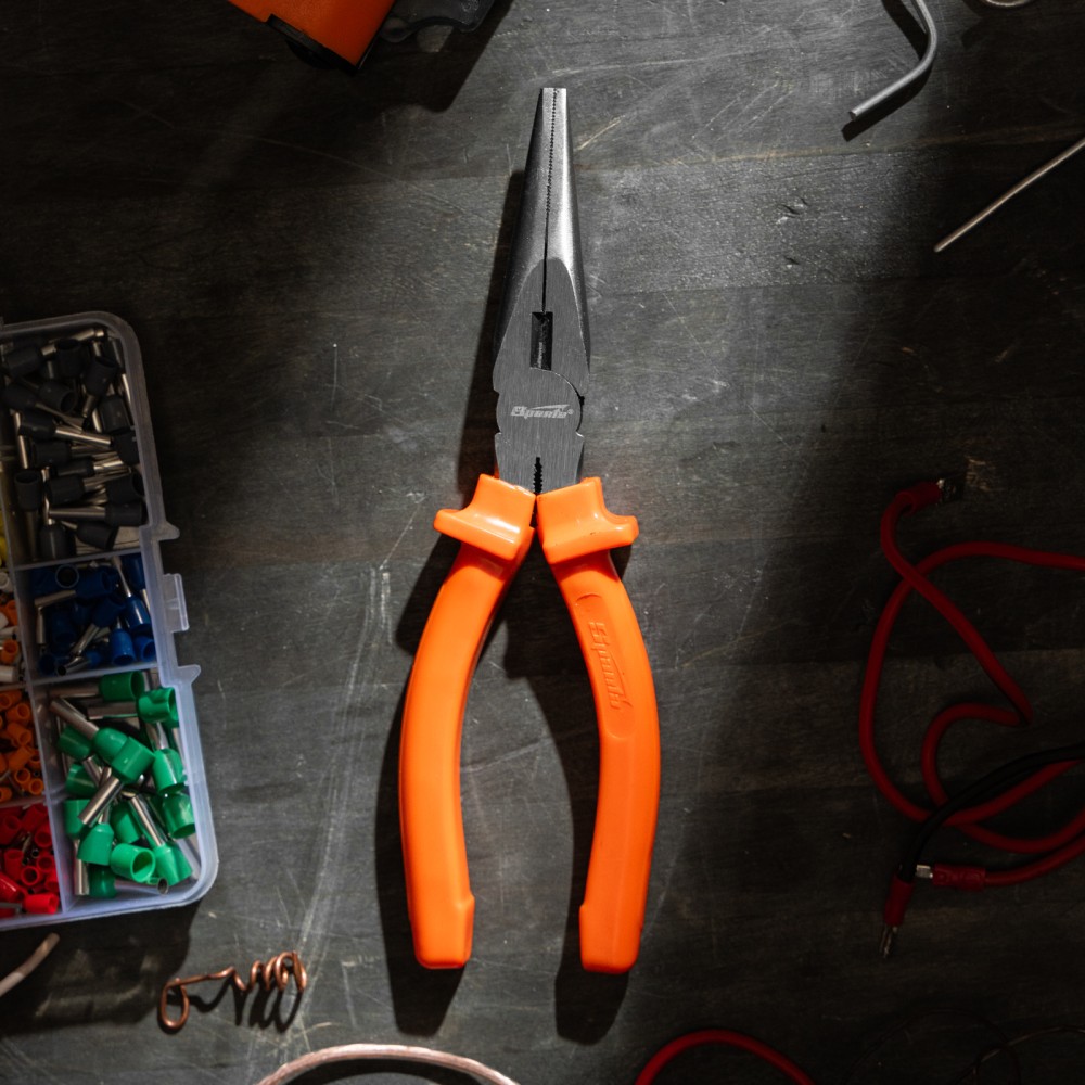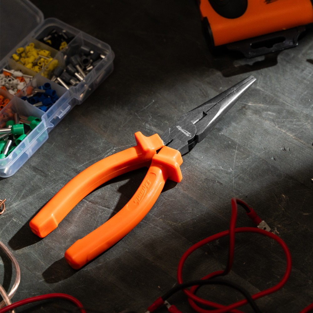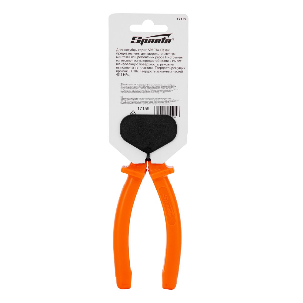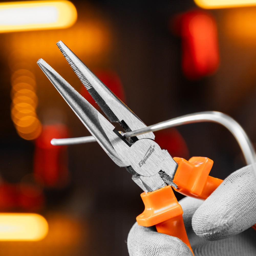 Прямые шлифованные длинногубцы Sparta Classic 17159 длиной 180 мм, с пластмассовыми рукоятками, облегчают манипуляции с крепежом, мелкими деталями, проводами и проволокой. Удлиненные губки обеспечивают доступ в узкие места. Инструмент будет полезен во время строительства или ремонта, пригодится для монтажа и демонтажа оборудования, а также при починке бытовой техники и электроники.ПреимуществаИзносостойкость — длинногубцы изготовлены из инструментальной углеродистой стали C45.Эффективное выполнение поставленных задач — губки имеют твердость около 45,5 HRC, режущими кромками твердостью 53 HRC можно перекусывать проволоку.Эргономичность — пластмассовые рукоятки с широкими упорами удобно лежат в ладони.