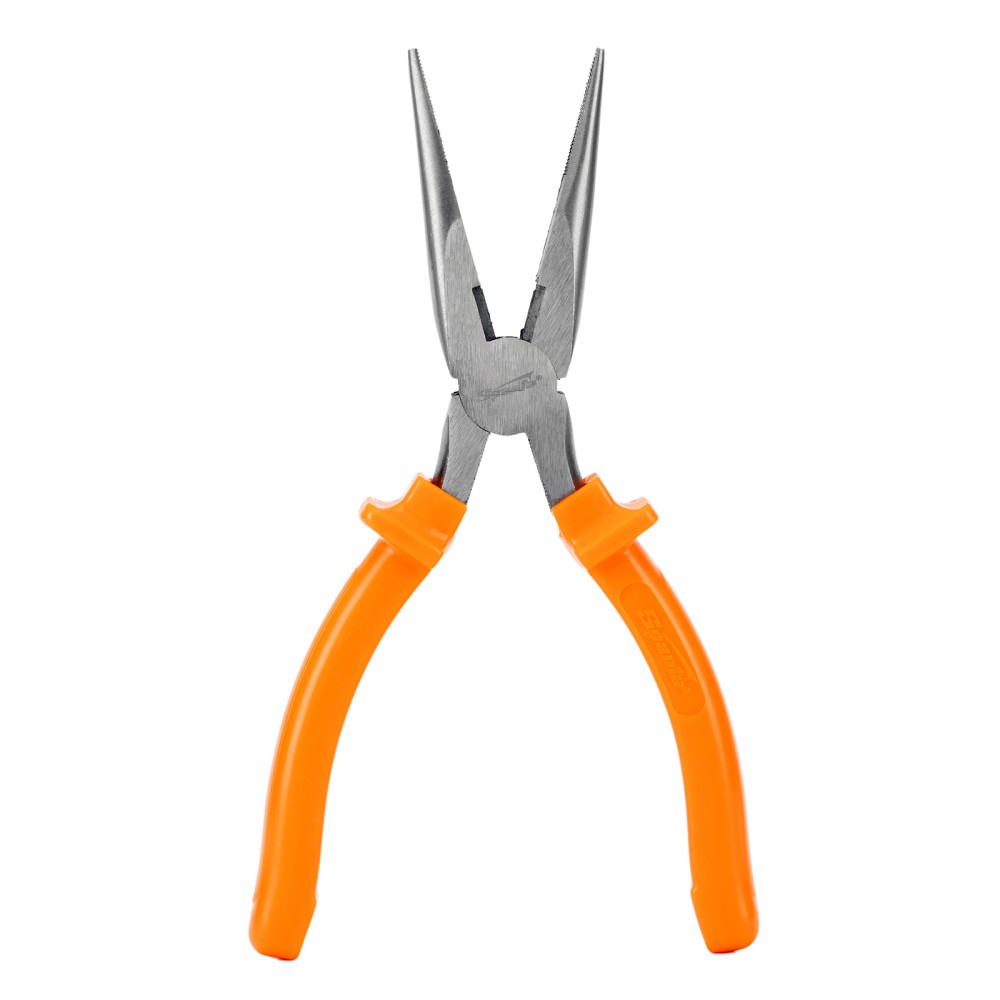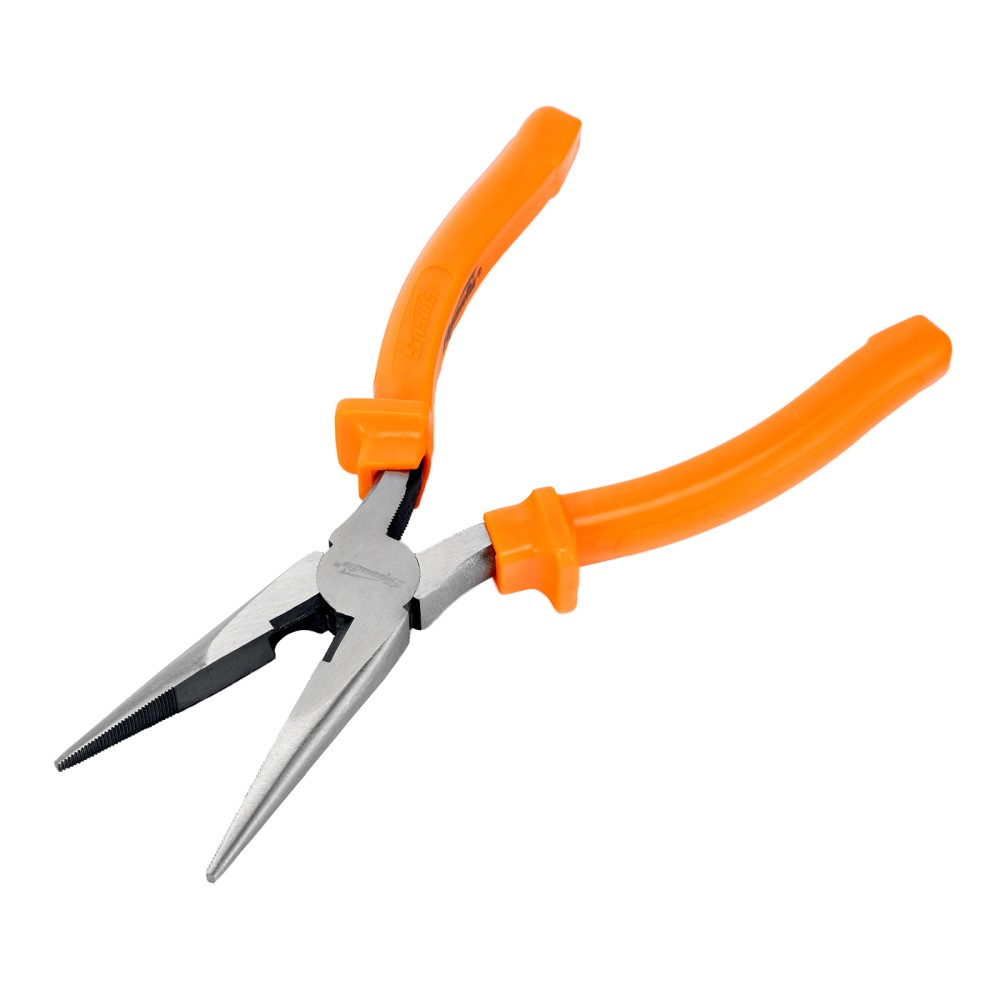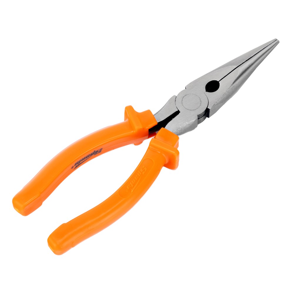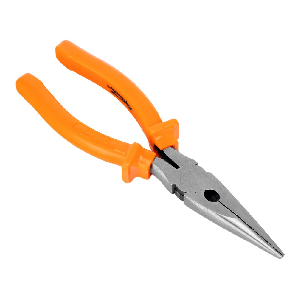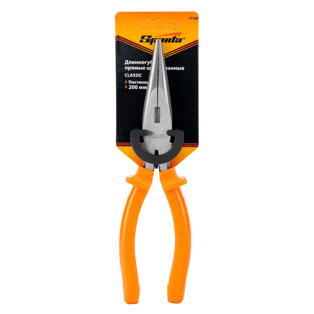 Прямые шлифованные длинногубцы Sparta Classic 17163 длиной 200 мм, с пластмассовыми рукоятками, облегчают манипуляции с крепежом, мелкими деталями, проводами и проволокой. Удлиненные губки обеспечивают доступ в узкие места. Инструмент будет полезен во время строительства или ремонта, пригодится для монтажа и демонтажа оборудования, а также при починке бытовой техники и электроники.ПреимуществаИзносостойкость — длинногубцы изготовлены из инструментальной углеродистой стали C45.Эффективное выполнение поставленных задач — губки имеют твердость около 45,5 HRC, режущими кромками твердостью 53 HRC можно перекусывать проволоку.Эргономичность — пластмассовые рукоятки с широкими упорами удобно лежат в ладони.