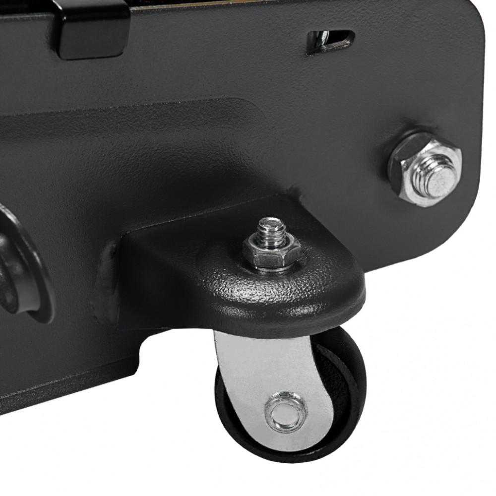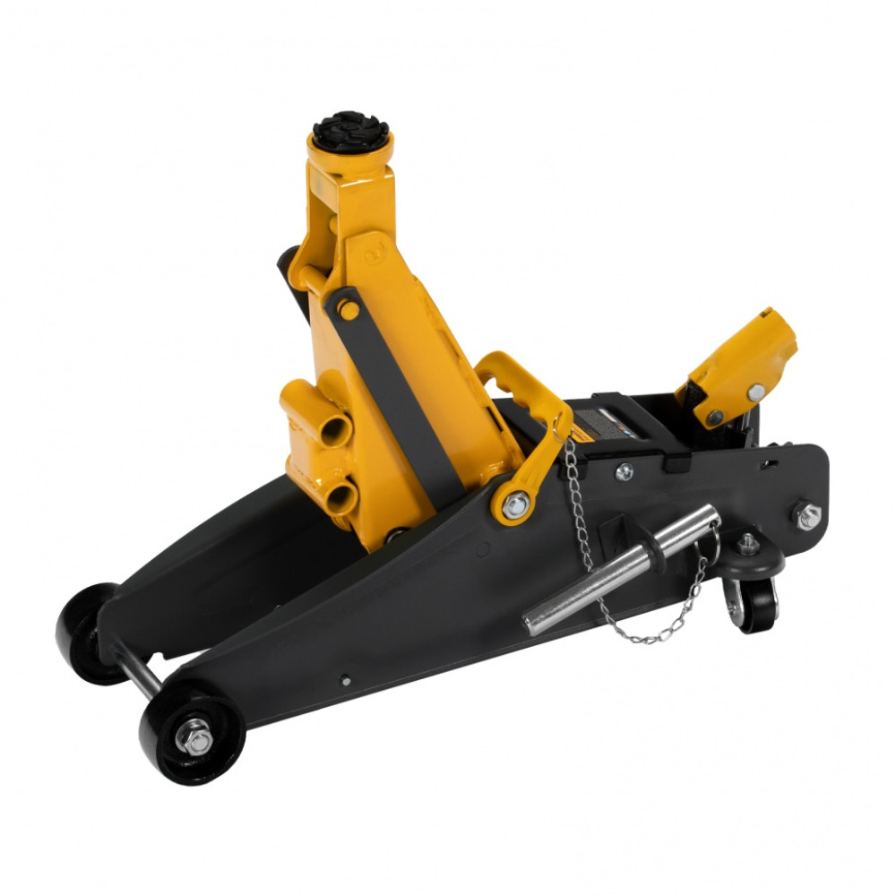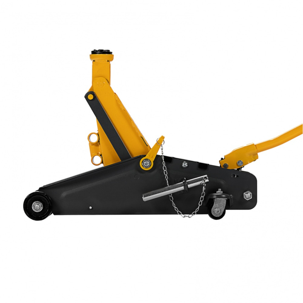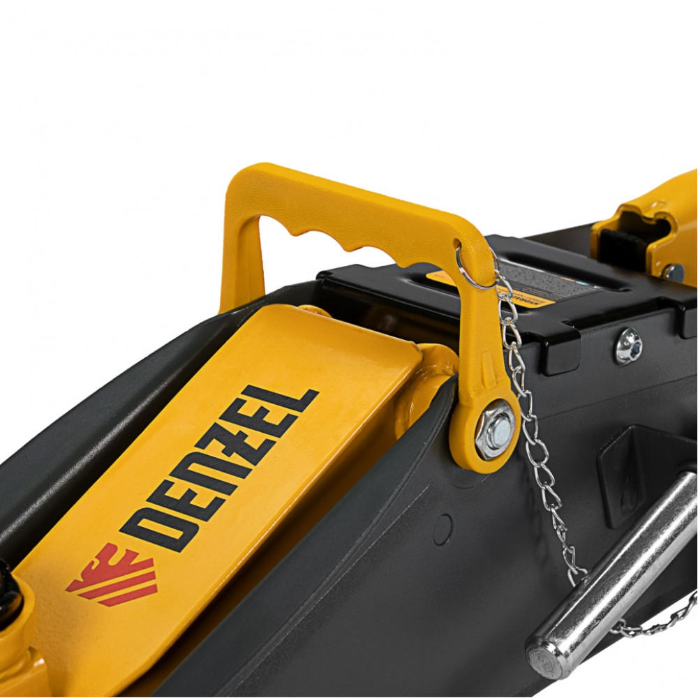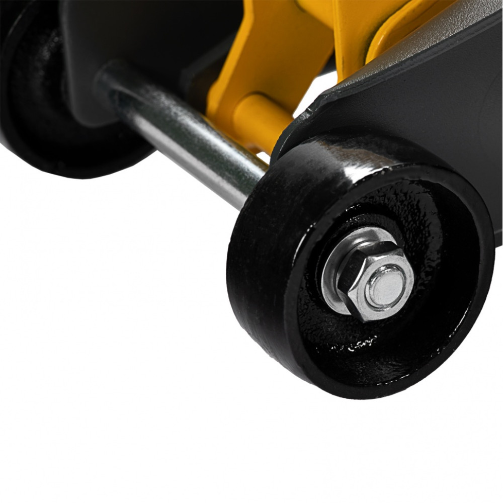 - Удобная рукоятка позволяет переносить домкрат с места на место и в случае необходимости переставляется на заднюю часть для удобного выкатывания из под автомобиля.