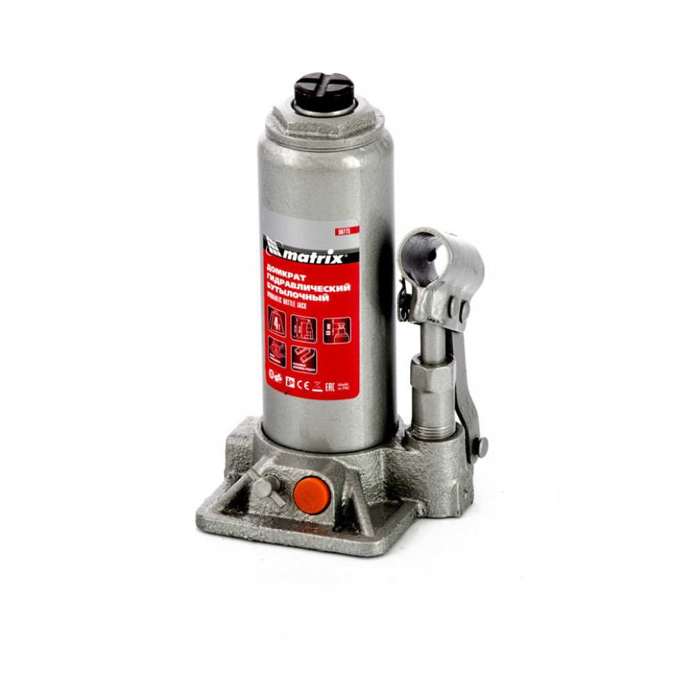 Гидравлический бутылочный домкрат Matrix 50775 обеспечивает быстрое поднятие грузов массой до 4 т на высоту 194-372 мм. Он оснащен встроенным магнитным уловителем, который собирает металлическую стружку, предотвращая износ резиновых уплотнителей. С помощью домкрата можно произвести ремонт авто.