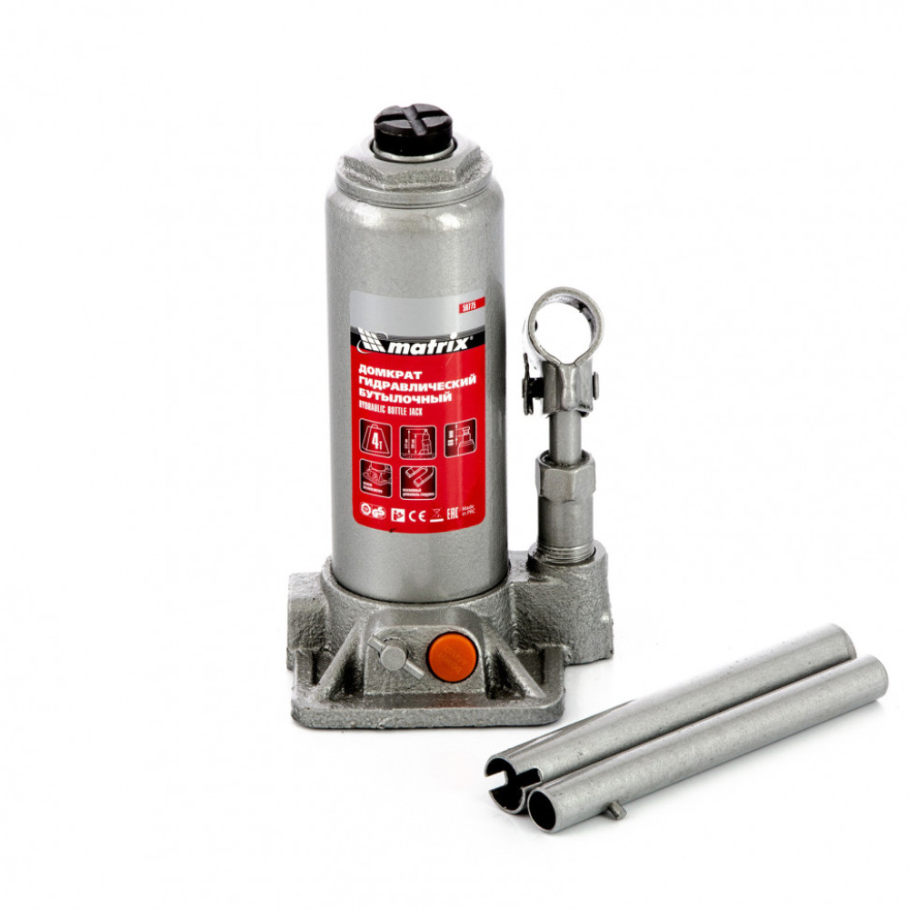Домкрат гидравлический бутылочный, 4 т, h подъема 194-372 мм, в пластиковом кейсе Matrix