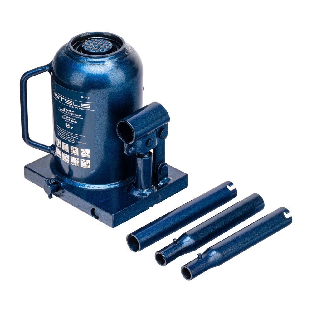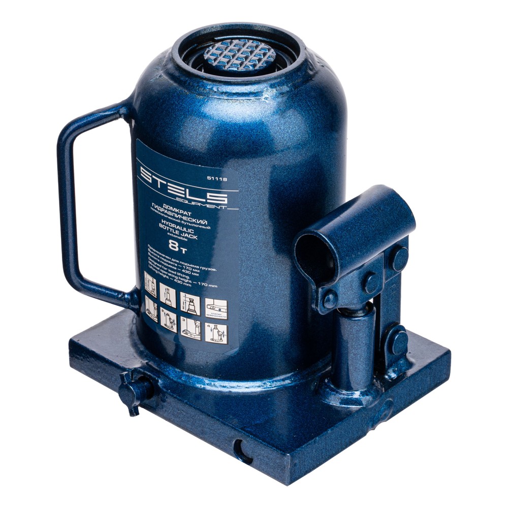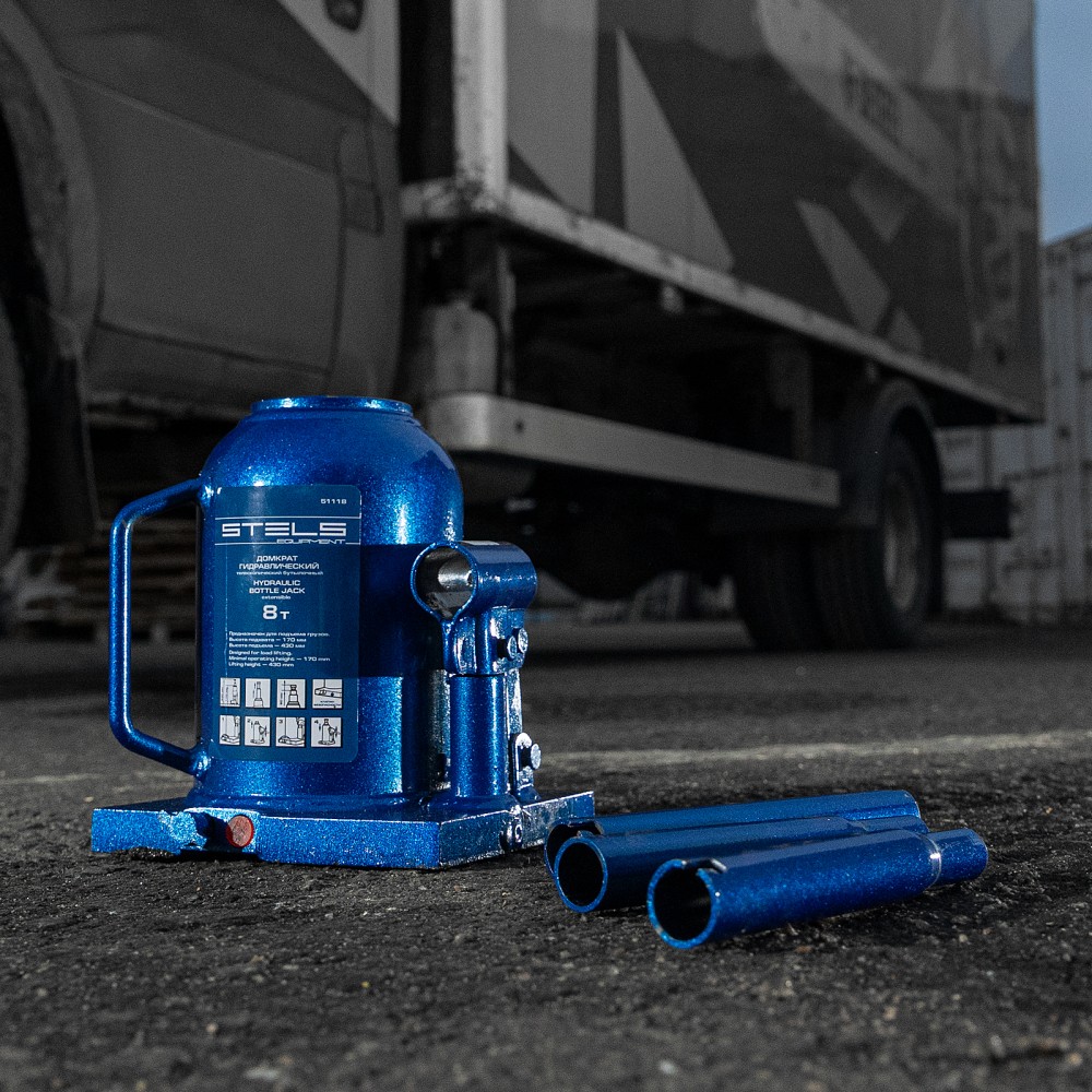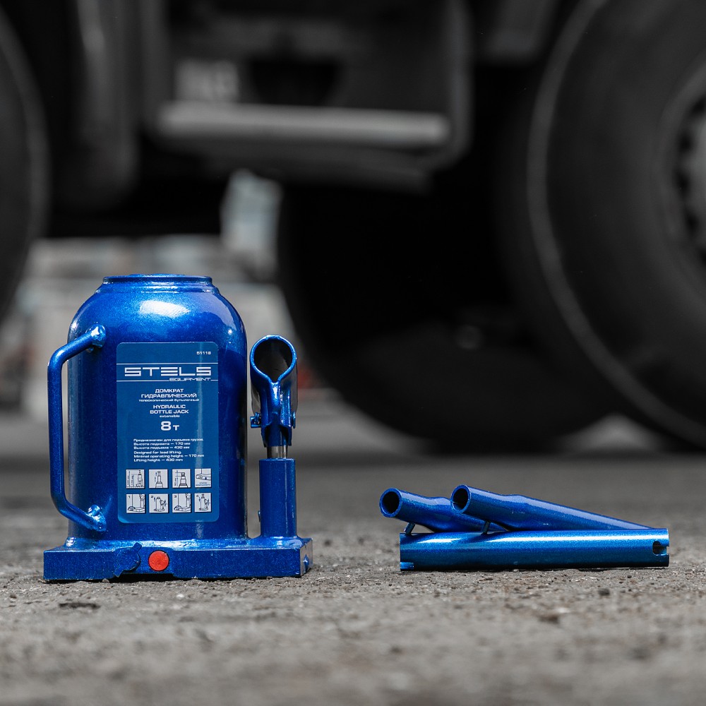 Гидравлический бутылочный телескопический домкрат Stels 51118 используется для поднятия грузов весом до 8 т с на высоту 170-430 мм. Не требует больших усилий и оптимален для автомобилей с большим клиренсом. Домкрат можно использовать в гараже для самостоятельного ремонта машины или в автосервисе для решения профессиональных задач.ПреимуществаЗащита от поломки — клапан безопасности не позволяет поднимать грузы массой свыше 8000 кг.Надежная конструкция — основание и корпус выполнены из стали и сварены между собой.Удобная транспортировка — на корпусе предусмотрена специальная ручка.