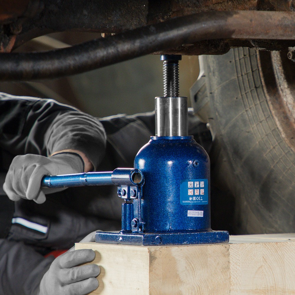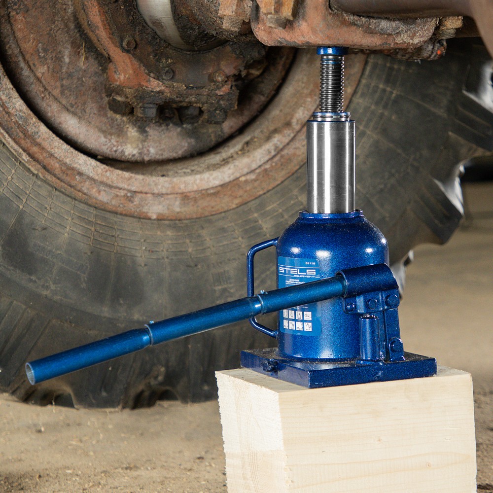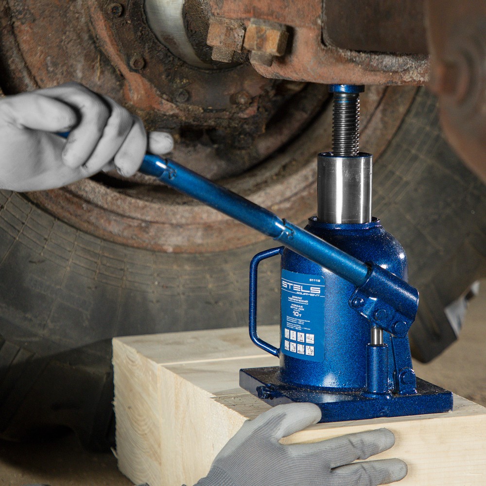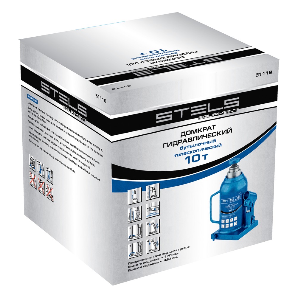 Гидравлический бутылочный телескопический домкрат Stels 51119 используется для поднятия грузов весом до 10 т с на высоту 170-430 мм. Не требует больших усилий и оптимален для автомобилей с большим клиренсом. Домкрат можно использовать в гараже для самостоятельного ремонта машины или в автосервисе для решения профессиональных задач.ПреимуществаЗащита от поломки — клапан безопасности не позволяет поднимать грузы массой свыше 10 т.Надежная конструкция — основание и корпус выполнены из стали и сварены между собой.Удобная транспортировка — на корпусе предусмотрена специальная ручка.