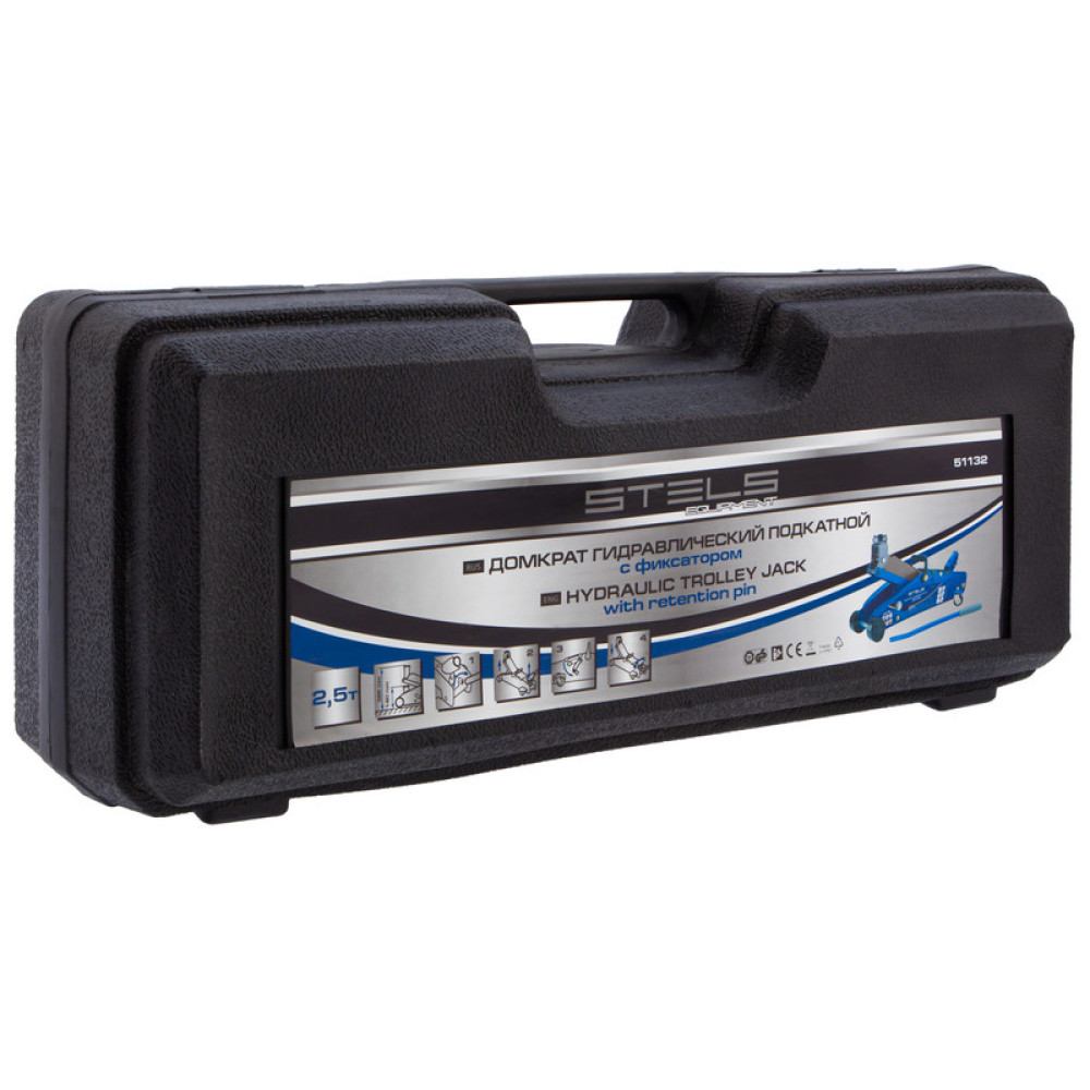 Подкатной гидравлический домкрат Stels Safety Pin 51132 с фиксатором, в кейсе, позволяет поднимать грузы весом до 2,5 т на высоту 385 мм. За счет низкого подхвата 140 мм используется для обслуживания автомашин со стандартным дорожным просветом. Пластиковый кейс облегчает хранение и транспортировку. Домкрат подходит для самостоятельного обслуживания авто.