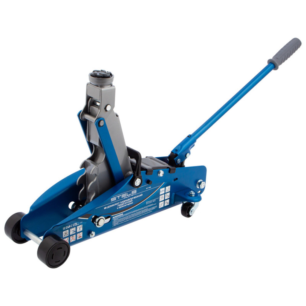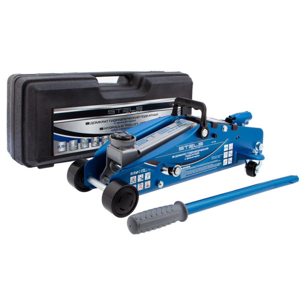 Домкрат гидравлический подкатной с фиксатором, 2.5 т, Safety Pin, 140-385 мм, в кейсе Stels