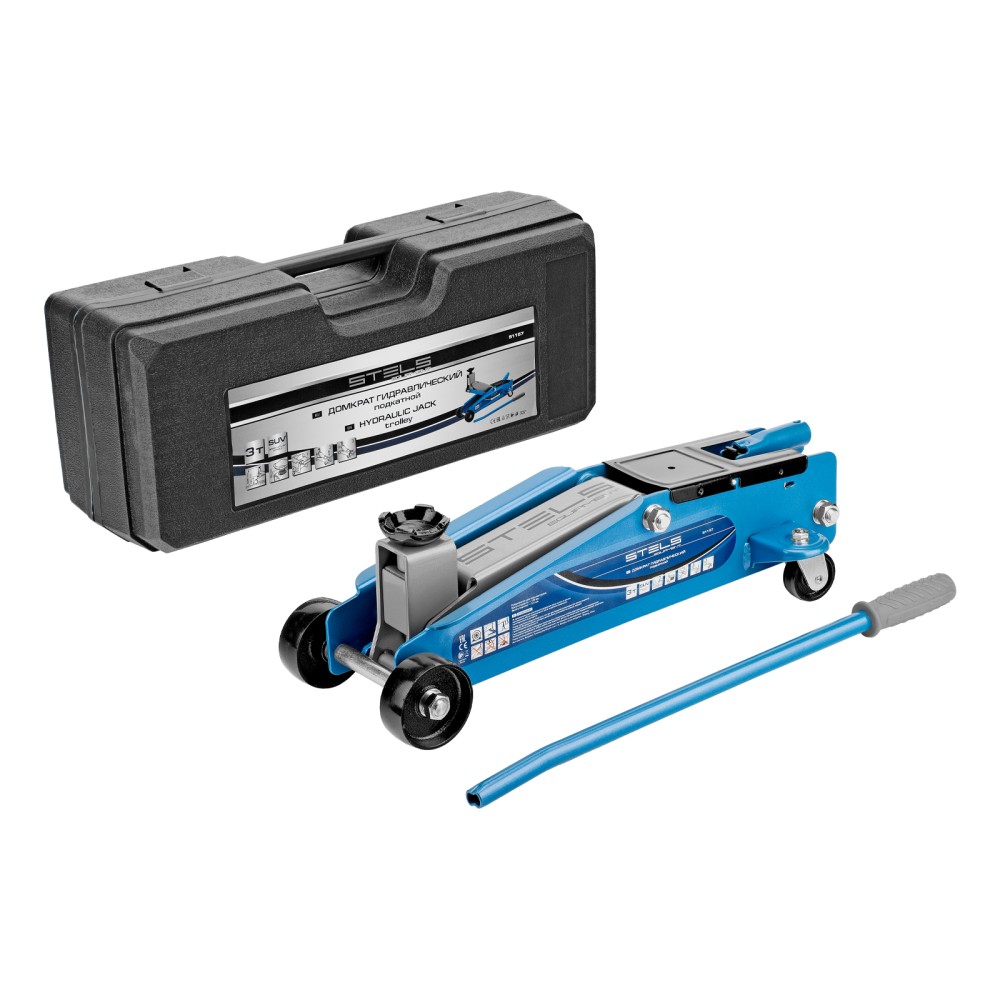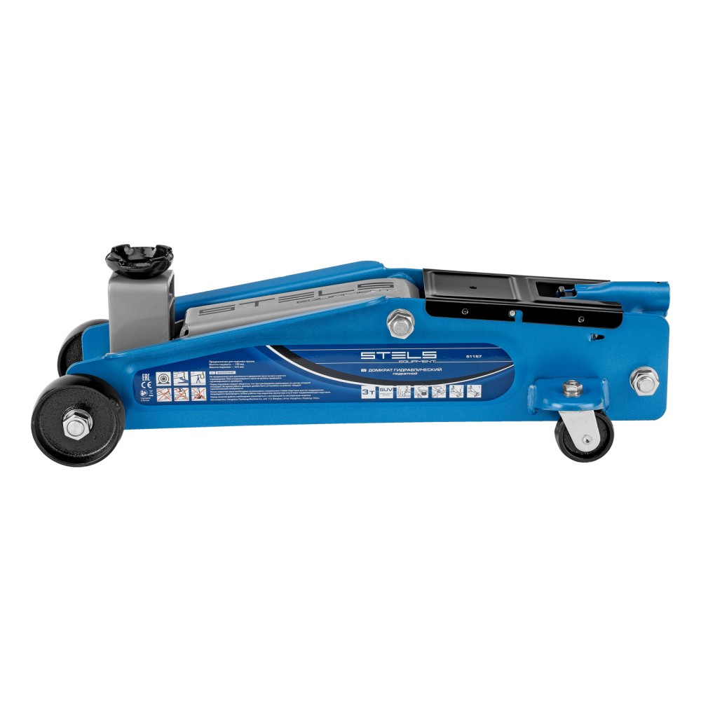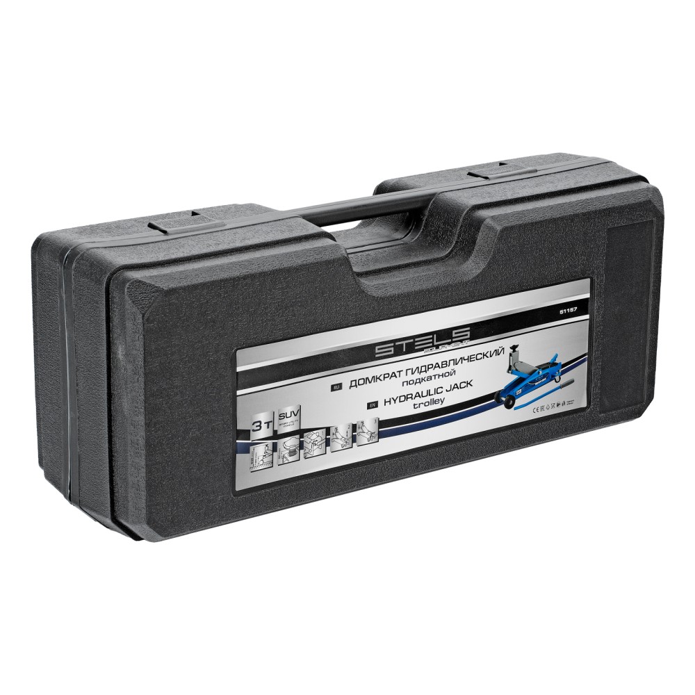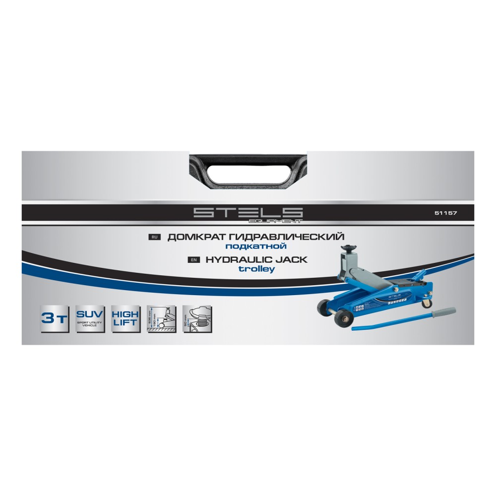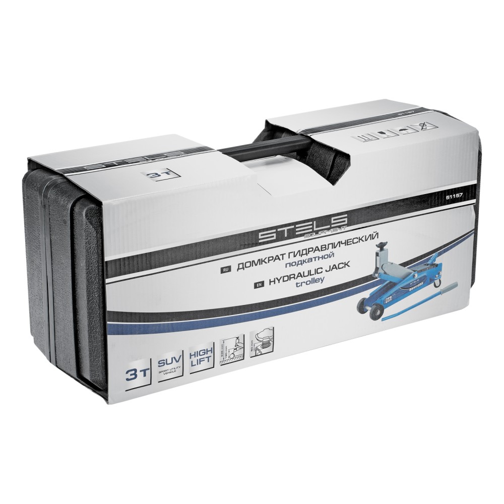 Подкатной гидравлический домкрат Stels 51157 с высоким подъемом 190 мм позволяет поднимать грузы весом до 3 т на высоту 535 мм и подходит для автомобилей класса SUV с увеличенным дорожным просветом. Может использоваться для самостоятельного обслуживания авто.ПреимуществаУстановка точной высоты подъема — положение опорной площадки регулируется в пределах 50 мм.Защита от перегрузки — предохранительный клапан не допускает подъем груза массой более 3 т.Маневренность — задние колеса сделаны поворотными, что облегчает установку и извлечение устройства.Комфортная работа даже при отрицательной температуре — благодаря рифленой накладке рабочая ручка не скользит в ладони.Удобное хранение и транспортировка — домкрат поставляется в надежном кейсе из ударопрочного пластика.