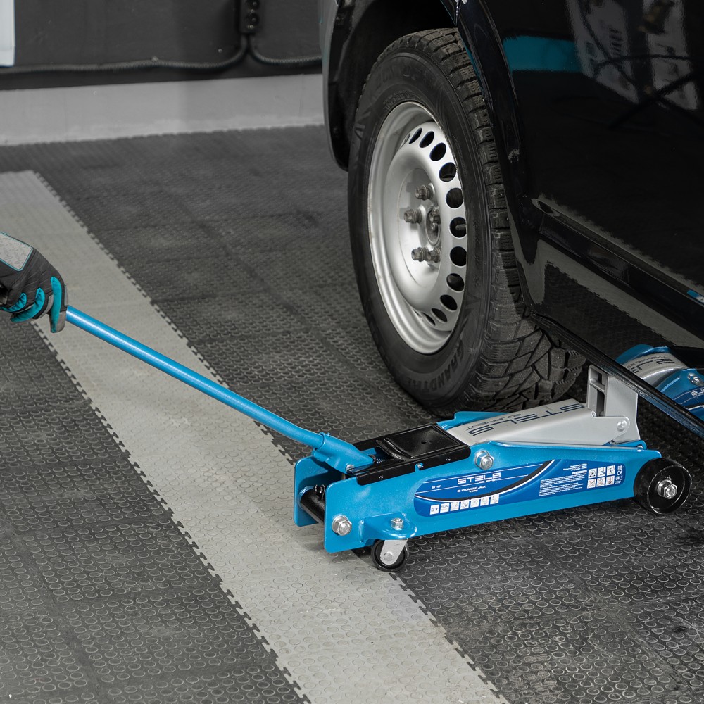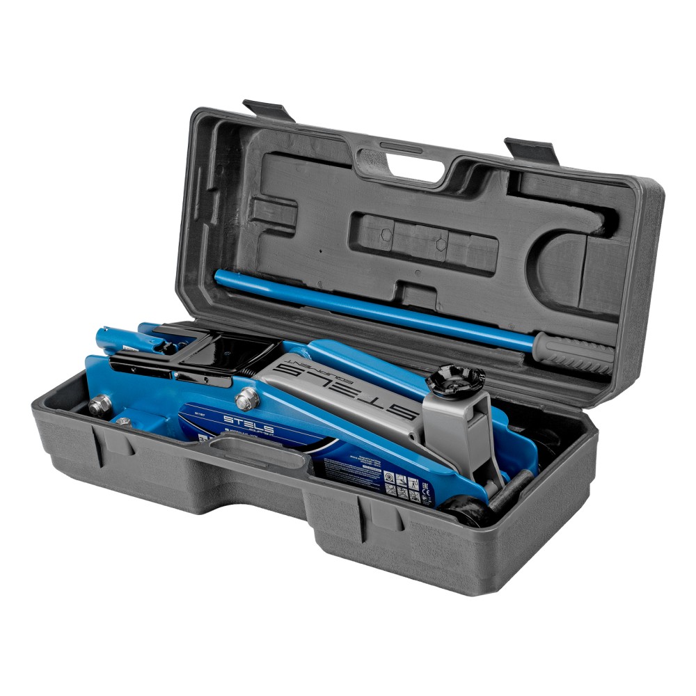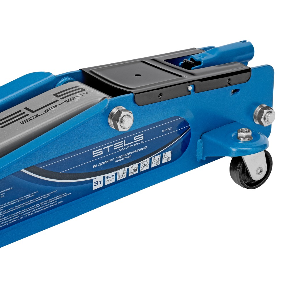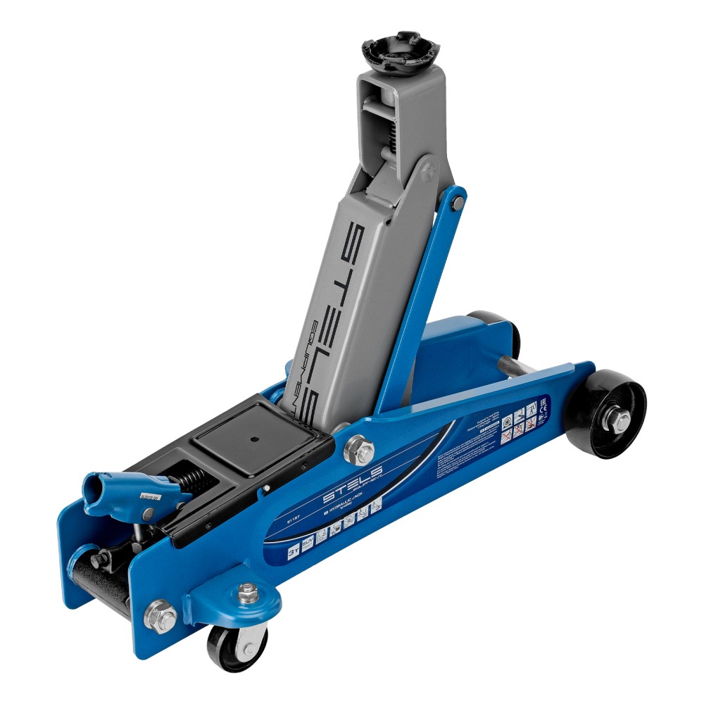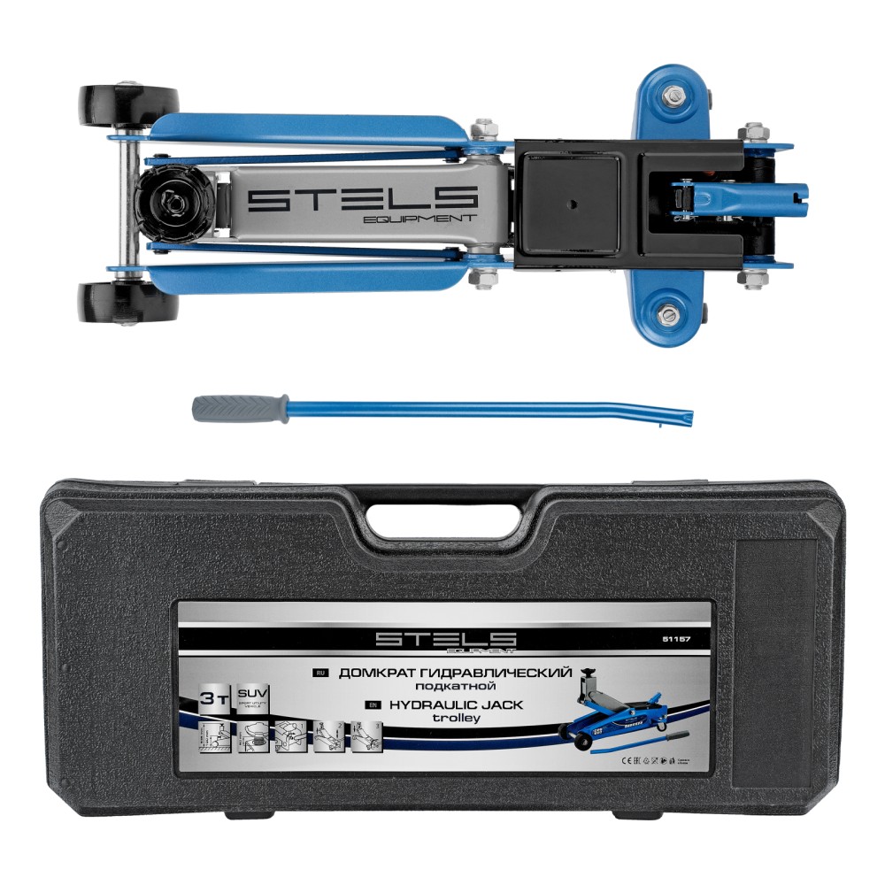 Подкатной гидравлический домкрат Stels 51157 с высоким подъемом 190 мм позволяет поднимать грузы весом до 3 т на высоту 535 мм и подходит для автомобилей класса SUV с увеличенным дорожным просветом. Может использоваться для самостоятельного обслуживания авто.ПреимуществаУстановка точной высоты подъема — положение опорной площадки регулируется в пределах 50 мм.Защита от перегрузки — предохранительный клапан не допускает подъем груза массой более 3 т.Маневренность — задние колеса сделаны поворотными, что облегчает установку и извлечение устройства.Комфортная работа даже при отрицательной температуре — благодаря рифленой накладке рабочая ручка не скользит в ладони.Удобное хранение и транспортировка — домкрат поставляется в надежном кейсе из ударопрочного пластика.