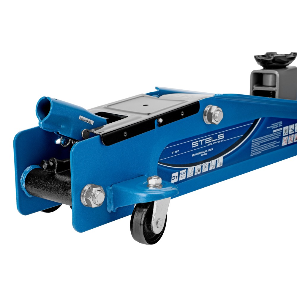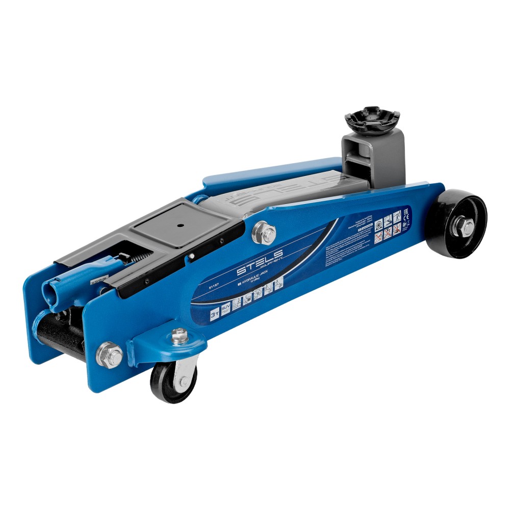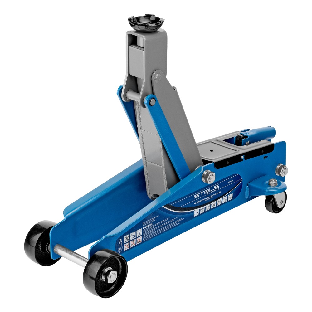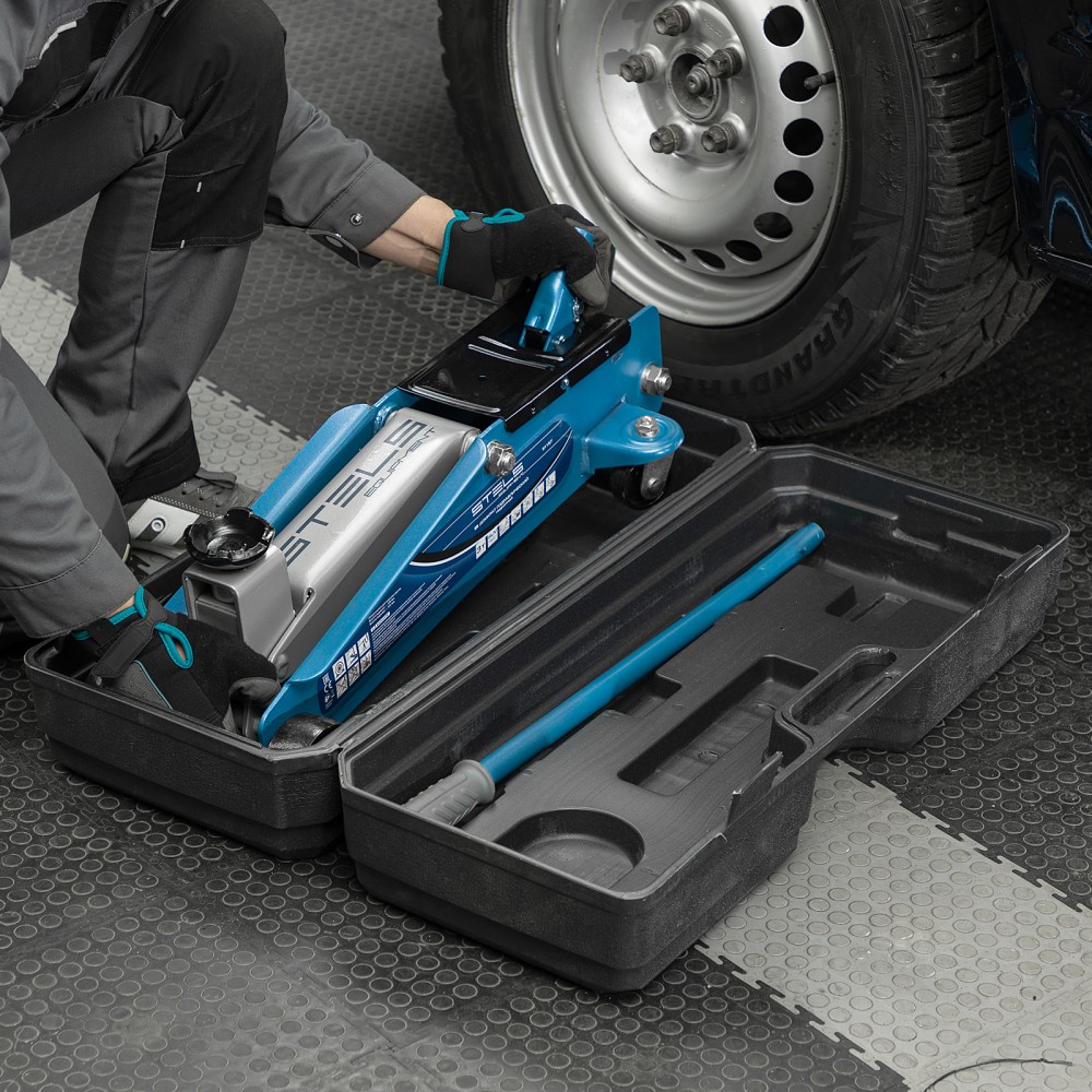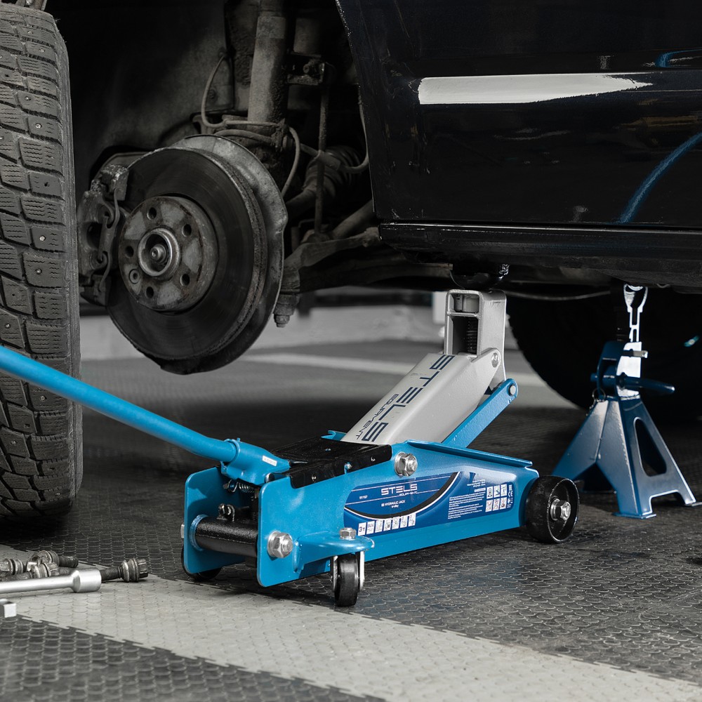Подкатной гидравлический домкрат Stels 51157 с высоким подъемом 190 мм позволяет поднимать грузы весом до 3 т на высоту 535 мм и подходит для автомобилей класса SUV с увеличенным дорожным просветом. Может использоваться для самостоятельного обслуживания авто.ПреимуществаУстановка точной высоты подъема — положение опорной площадки регулируется в пределах 50 мм.Защита от перегрузки — предохранительный клапан не допускает подъем груза массой более 3 т.Маневренность — задние колеса сделаны поворотными, что облегчает установку и извлечение устройства.Комфортная работа даже при отрицательной температуре — благодаря рифленой накладке рабочая ручка не скользит в ладони.Удобное хранение и транспортировка — домкрат поставляется в надежном кейсе из ударопрочного пластика.